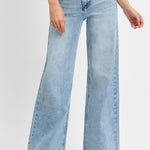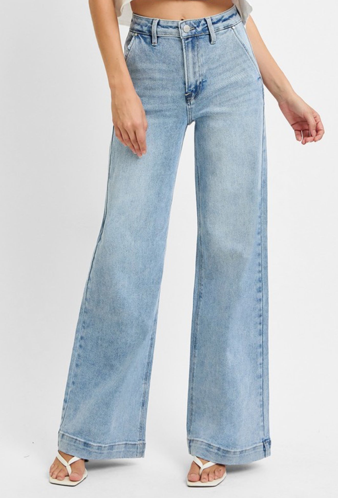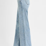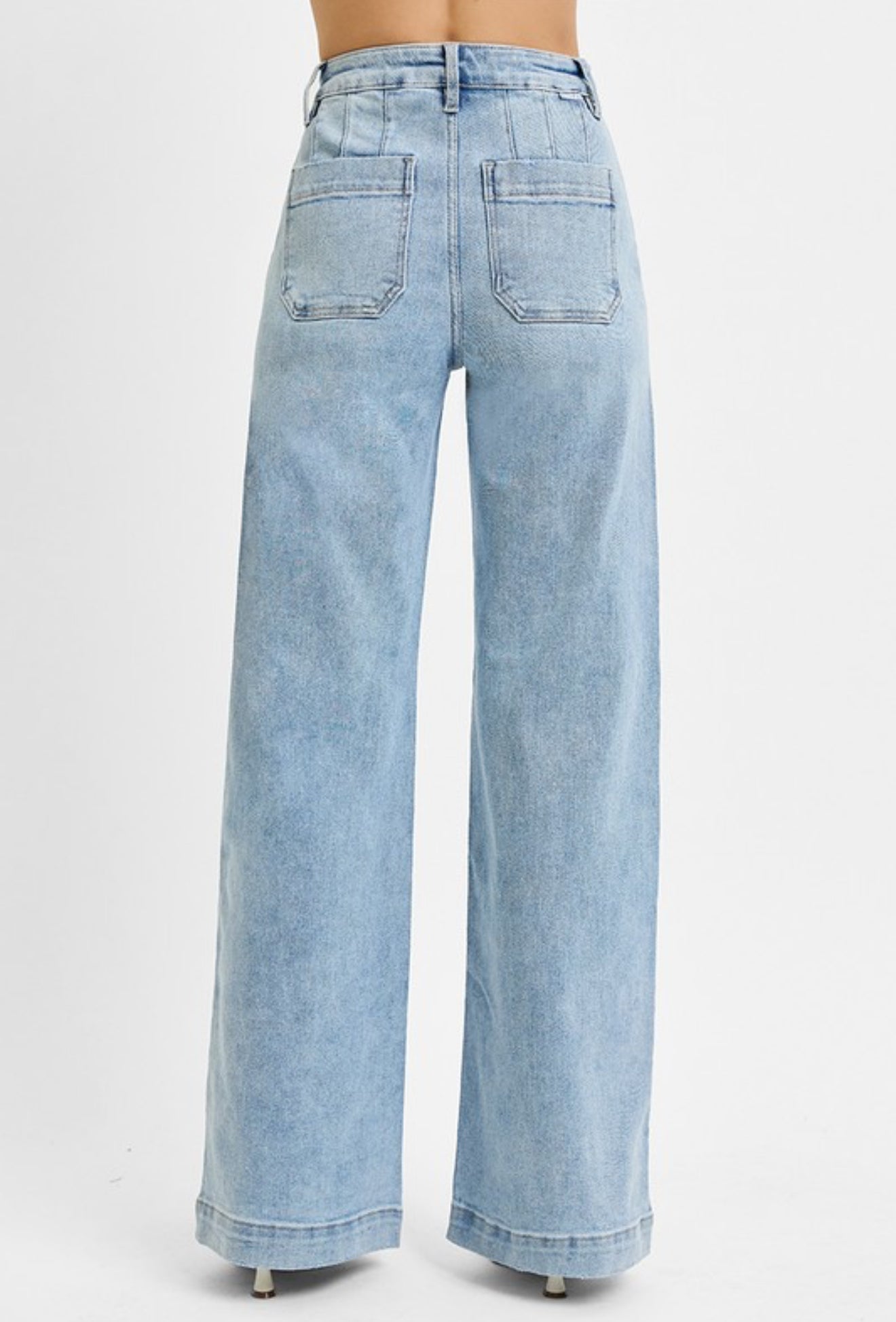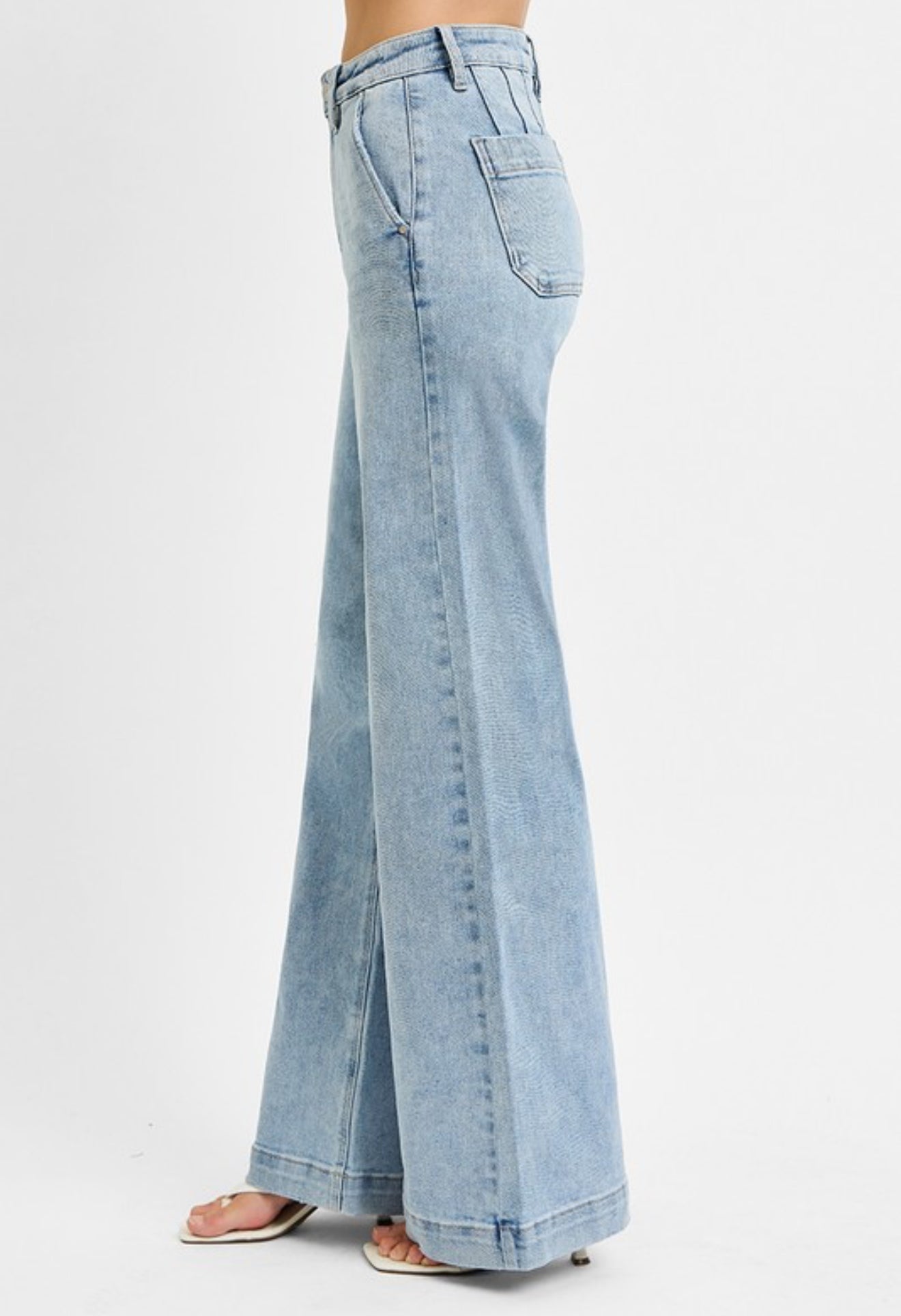 HIGH RISE WIDE LEG SLANTED POCKET JEANS