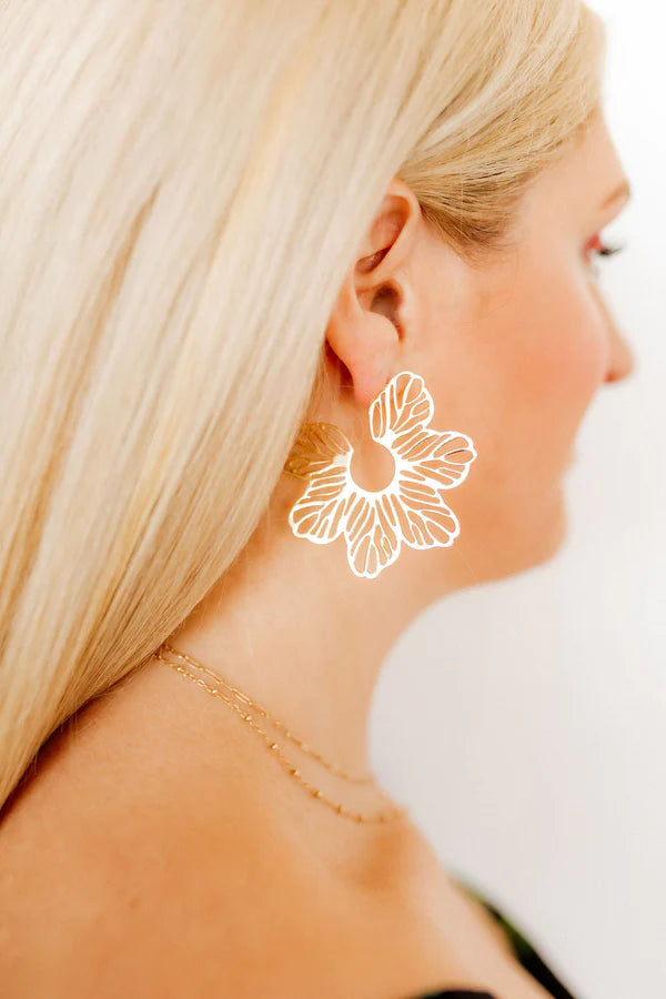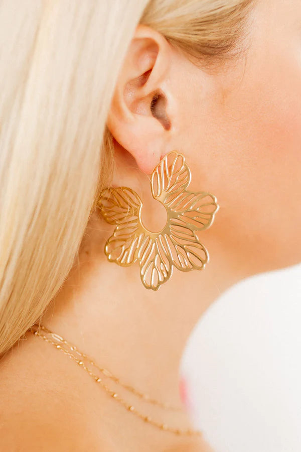 These gorgeous gold flower earrings designed with sensitive ears in mind are perfect for vacation or a fun night out. These earrings are lightweight beauties crafted from durable gold-plated brass, ensuring a lasting shine without compromising comfort. Plus they are copper and nickel free, making them the perfect blend of style and sensitivity for your everyday wear!