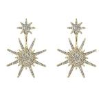 We love these star earrings because of the way the double stars decorate these celestial earrings. Having these gold earrings on is almost like a shining star hanging from your ears! Product Details: Gold tone brass CZ crystals Approximately 1.5" length Closure: push-back