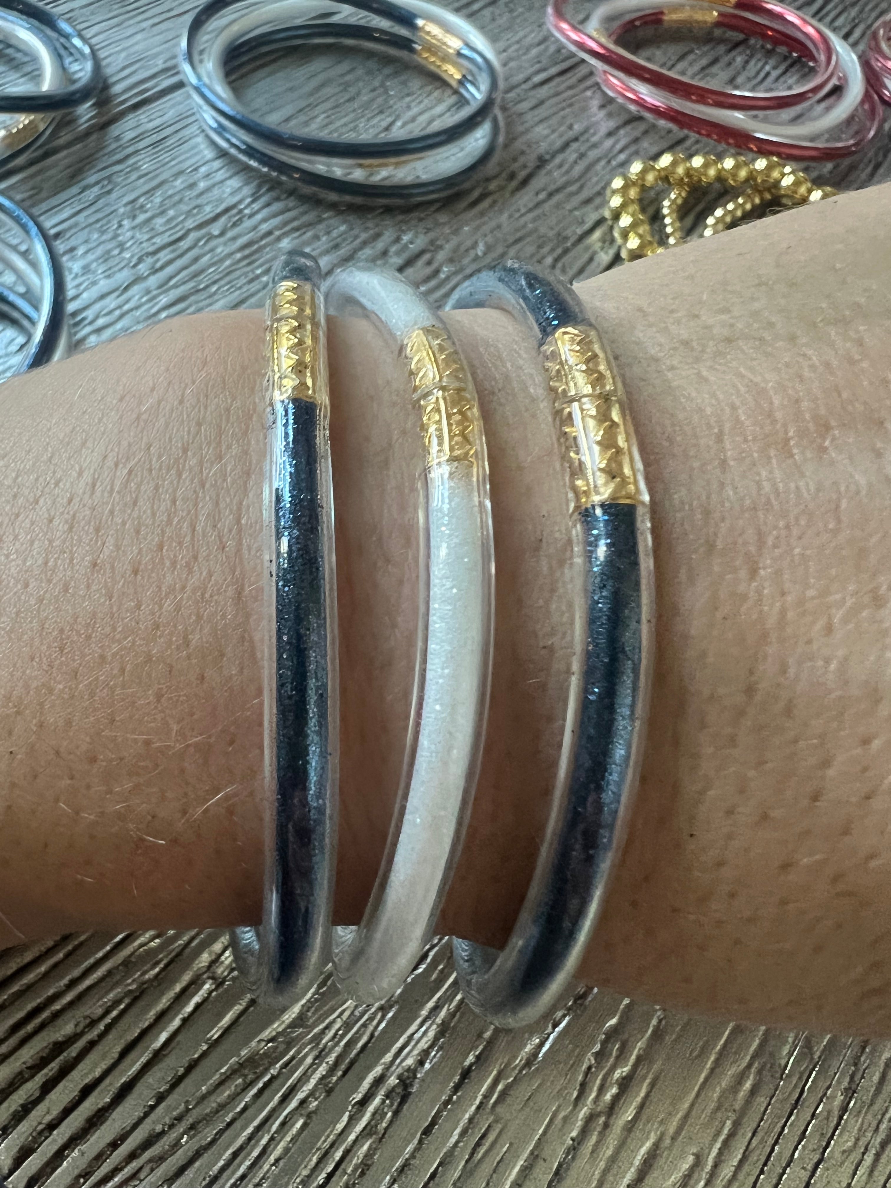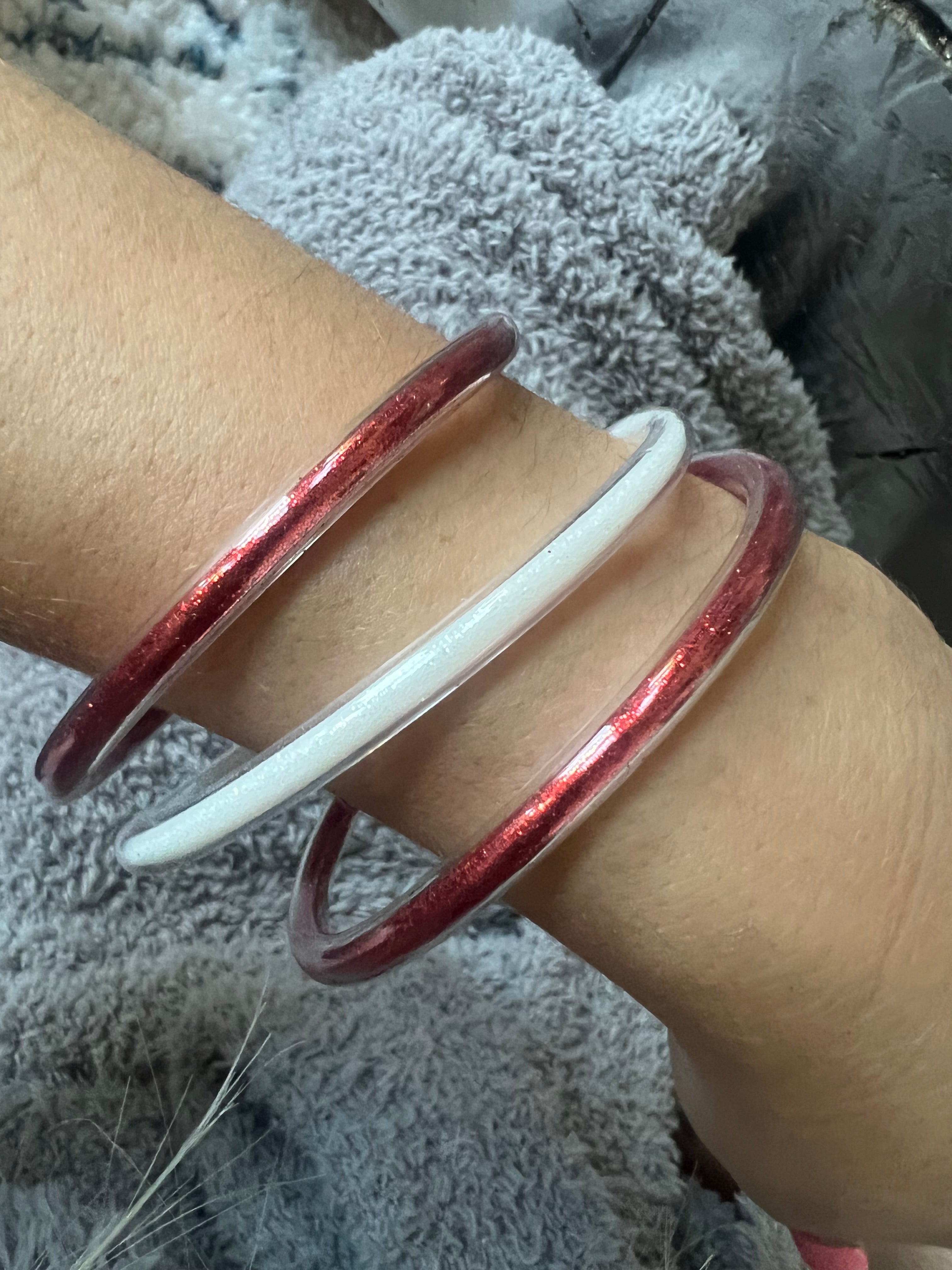 Jelly bangle set, assorted colors (Red/White, Blue/White, Orange/White/Blue)