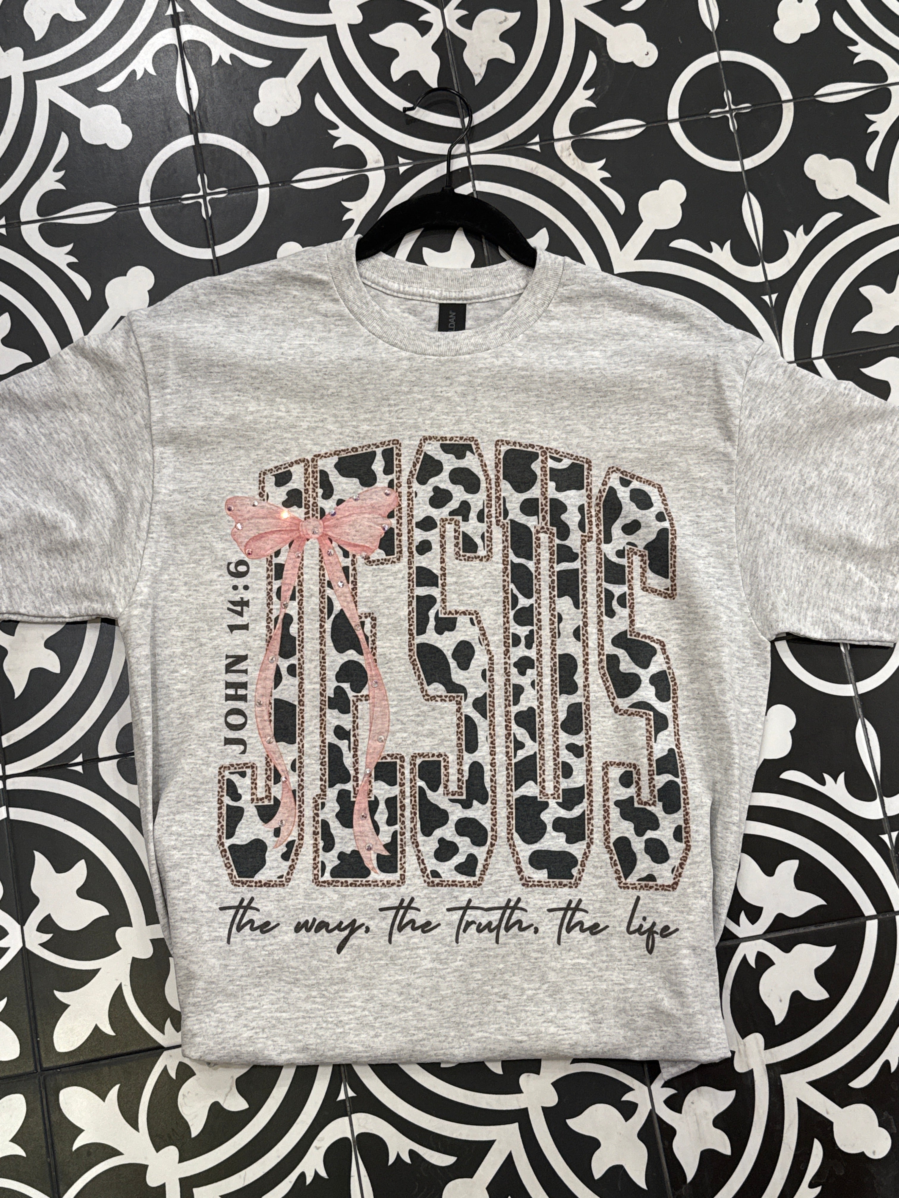 If you love, Jesus, and you love the country than this T-shirt is for you! The cutest cow print, with a few pretty jewels, and a comfy fit. What could be better! This is printed on a Gilden T-shirt.