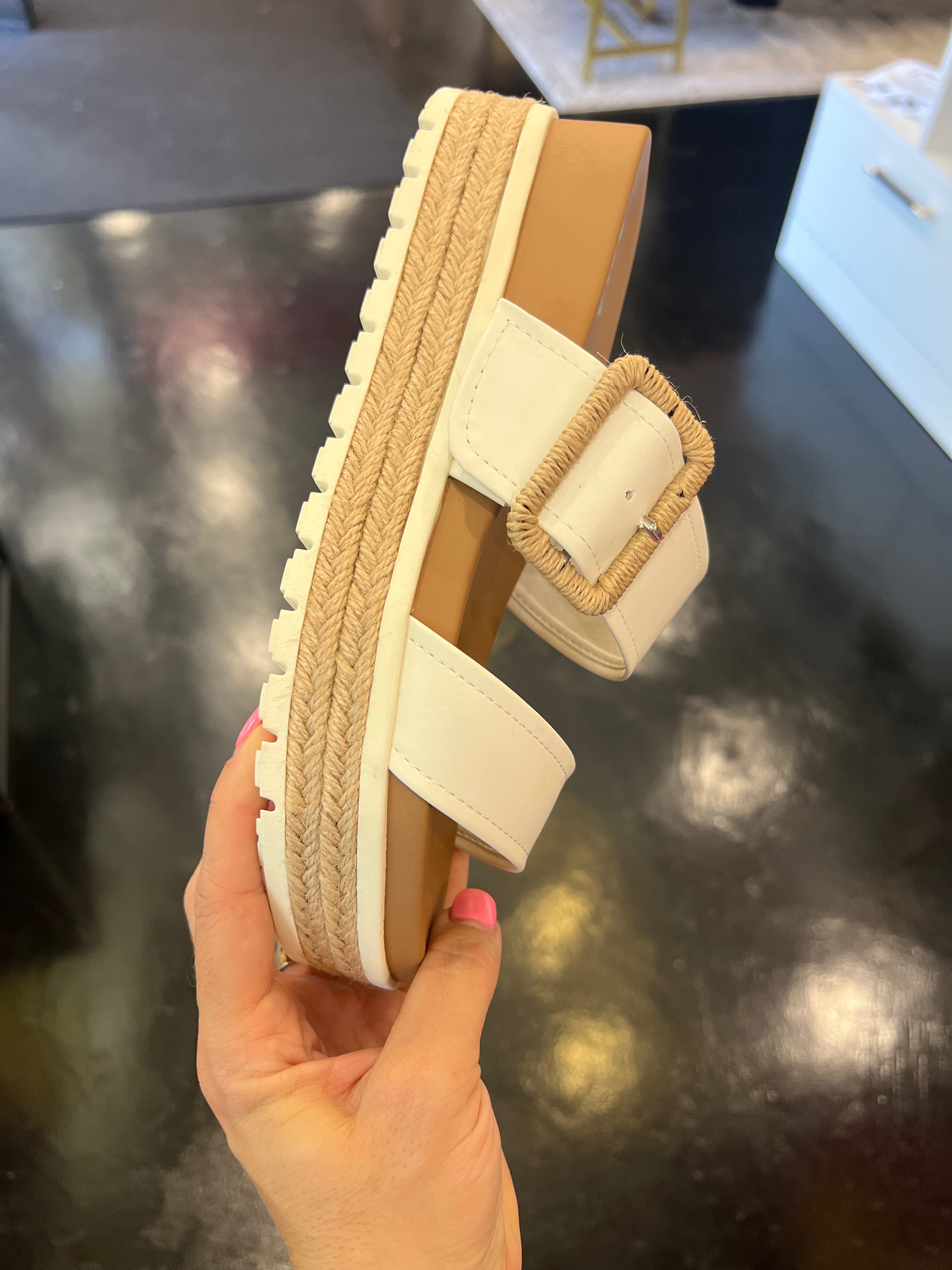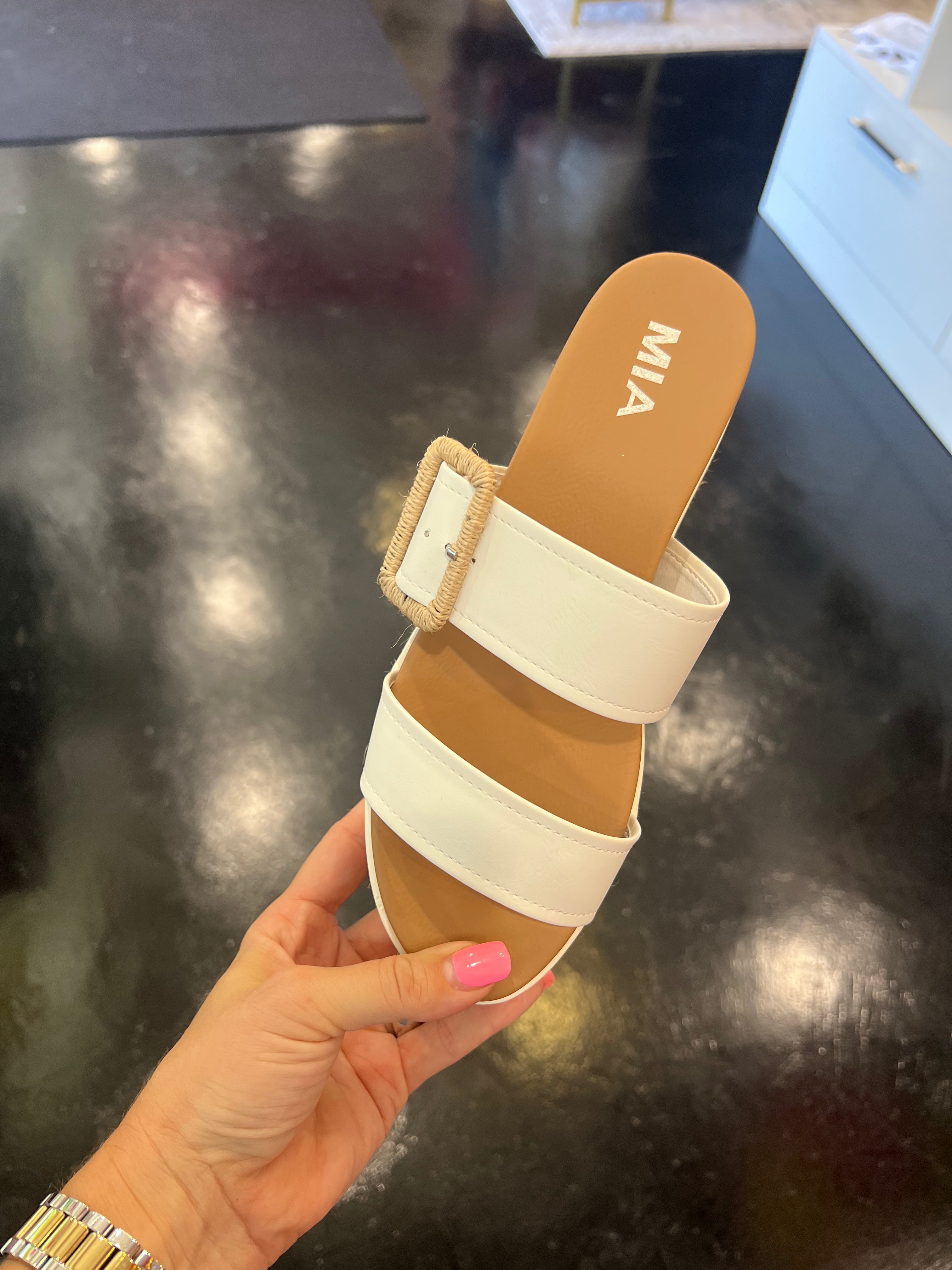 A vegan leather sandal that is crafted with 2 upper straps with a buckle opening. Featuring MIA's signature anatomically contoured footbed and finished on a 2.3" heel. It's the perfect staple for warm spring days.