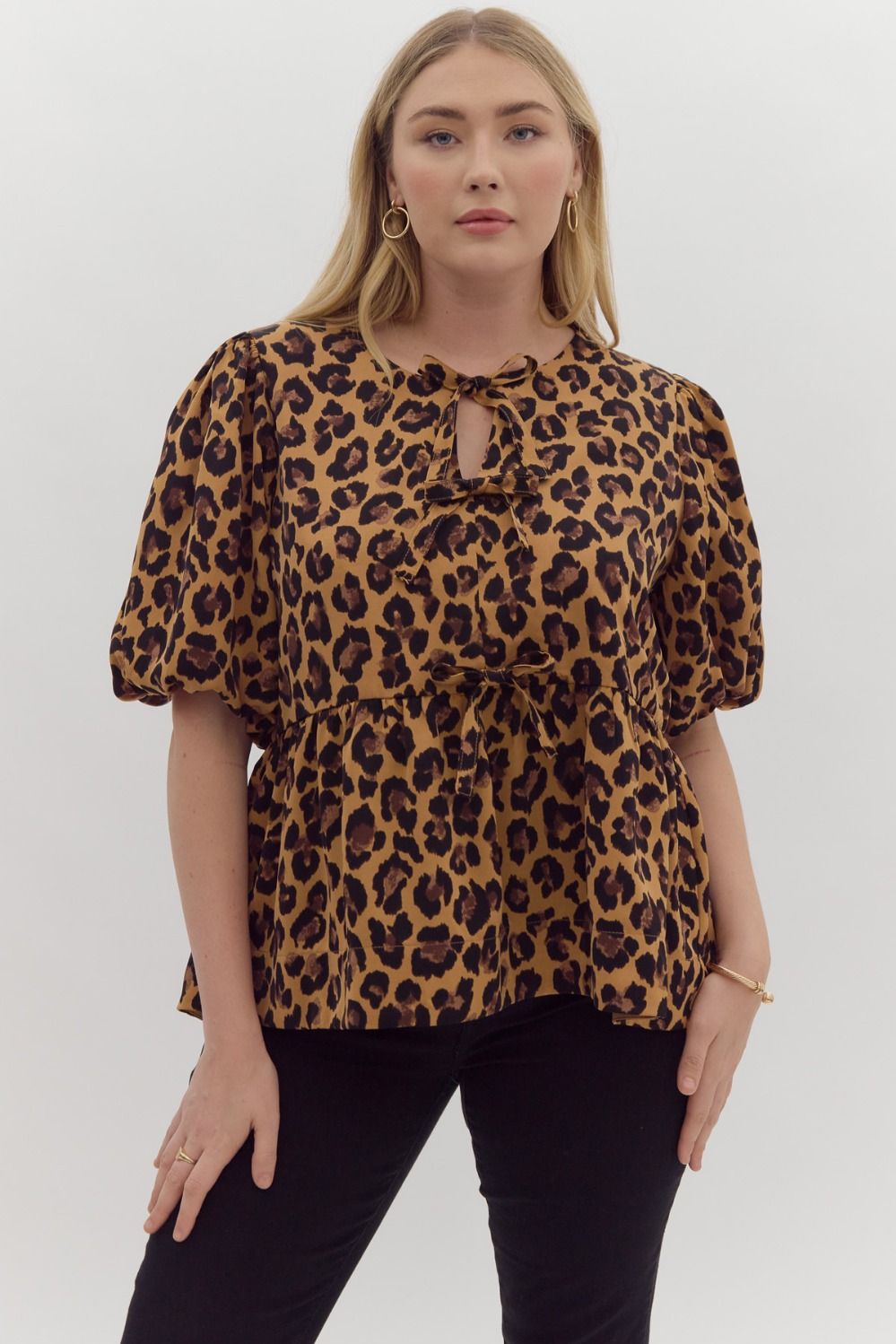 This leopard print bubble sleeve top is a playful and stylish addition to your wardrobe! The eye-catching print adds a touch of wild flair, while the bow detail at the front gives it a sweet, feminine touch. The elastic cuffs create a fun puffed effect, making the sleeves really stand out. Crafted from lightweight, woven fabric, it’s unlined and non-sheer, ensuring you feel comfortable and confident all day. Perfect for dressing up with jeans or pairing with a skirt, this top effortlessly combines trendiness with versatility, making it a staple for any casual outing or get-together!