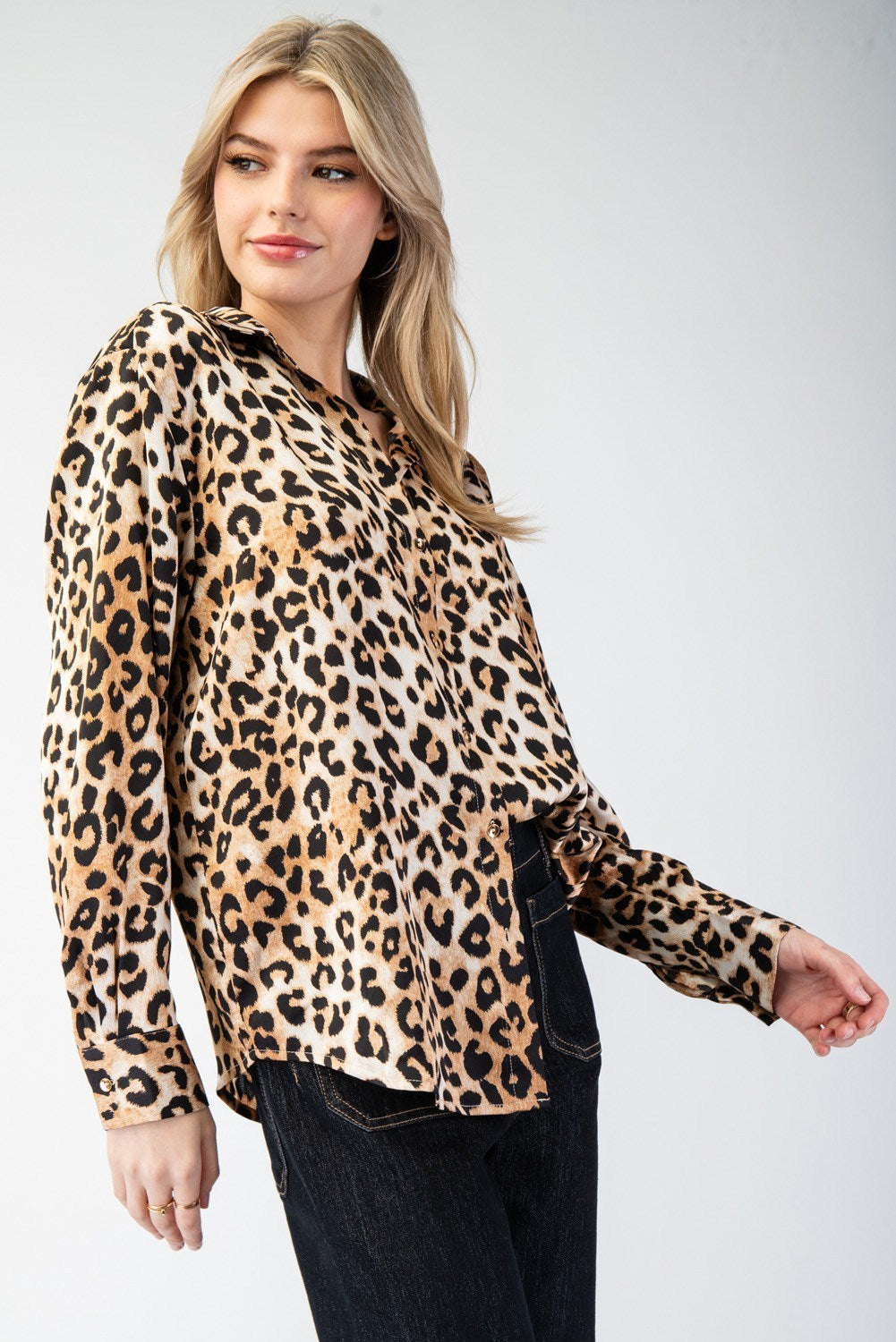 This long sleeve blouse is all about making a bold statement with its fierce all-around leopard print. The button-front design gives it a polished, put-together look, while the buttoned cuffs add a sleek finish to the sleeves. It’s the perfect top for when you want to feel both stylish and confident, whether you’re heading to the office or out for dinner. With its eye-catching print and comfortable fit, this blouse lets you embrace your wild side while still keeping it chic.