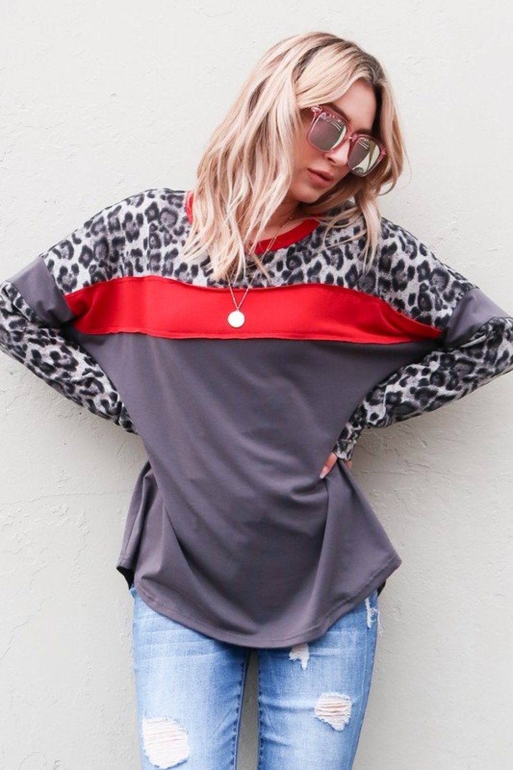 Long Sleeve Grey/Red/Leopard Shirt