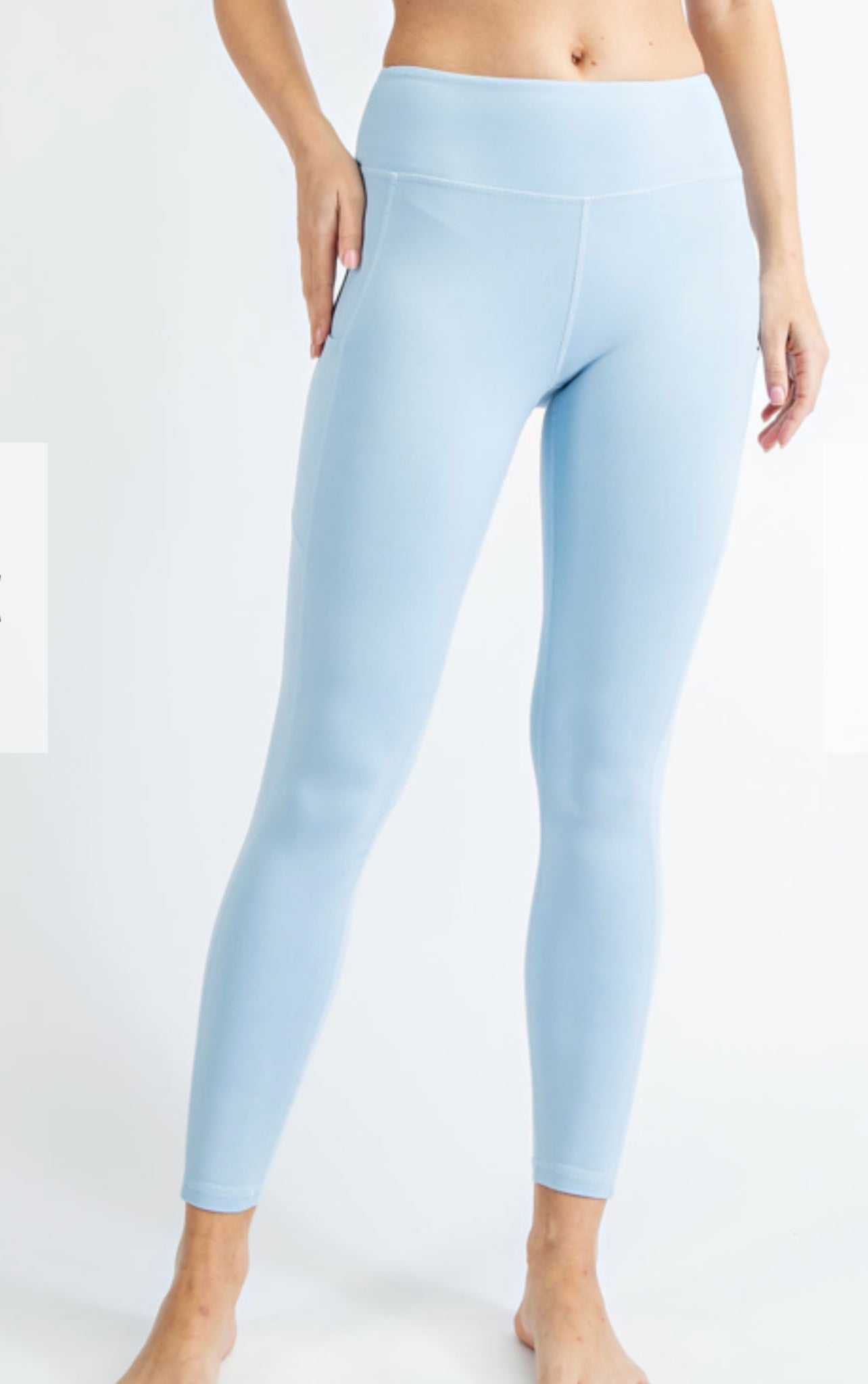 LIGHT BLUE BUTTER YOGA LEGGINGS WITH POCKETS