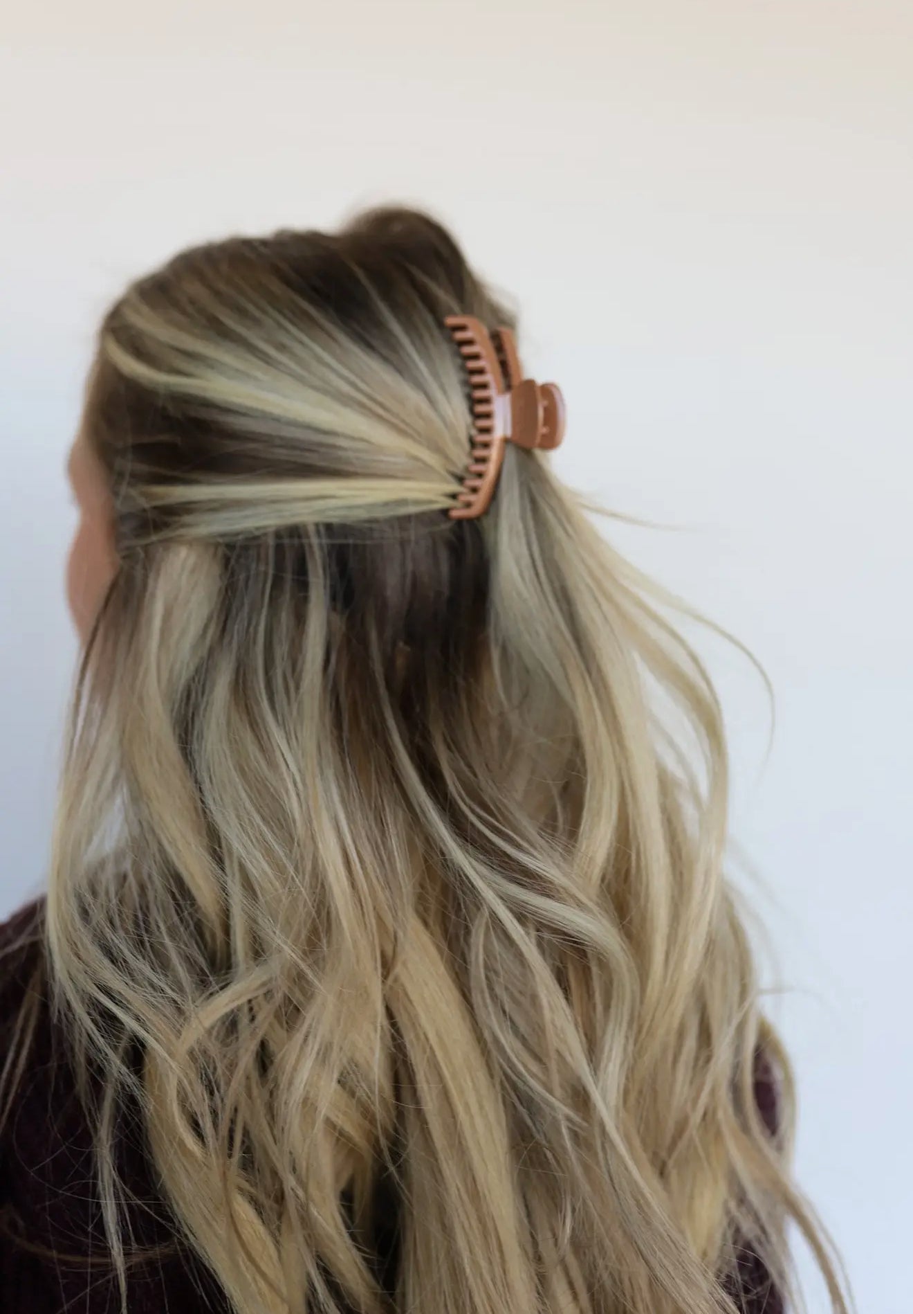 The 'Hold Everything Claw' now in a new shiny finish. It really can hold everything!! It looks deceiving because of its size but trust me, when you learn how to put it in your hair, it's not going anywhere!!