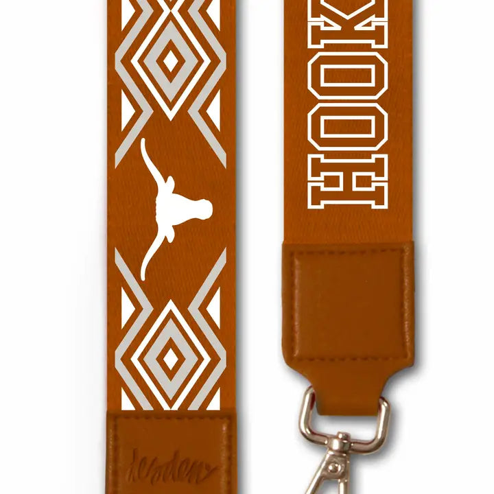 Customize your accessories with this designer 2' wide Printed Purse Strap with the iconic Texas Longhorns logo. Show your team spirit and upgrade your game day style with this customizable and fashionable piece. * 2 inch wide strap with ikat pattern, adjusts to 55" * crossbody or over the shoulder style * easily snaps on to most any clear bag or everyday purse * Officially Collegiate Licensed Product