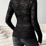 Features delicate allover floral lace with a scalloped V neckline for a romantic and graceful vibe. Slim Fit Silhouette Designed to hug the curves comfortably, this top enhances your figure while remaining lightweight. Easy to wear with a stretch-free sheer lace design, ideal as a statement top or layering piece.