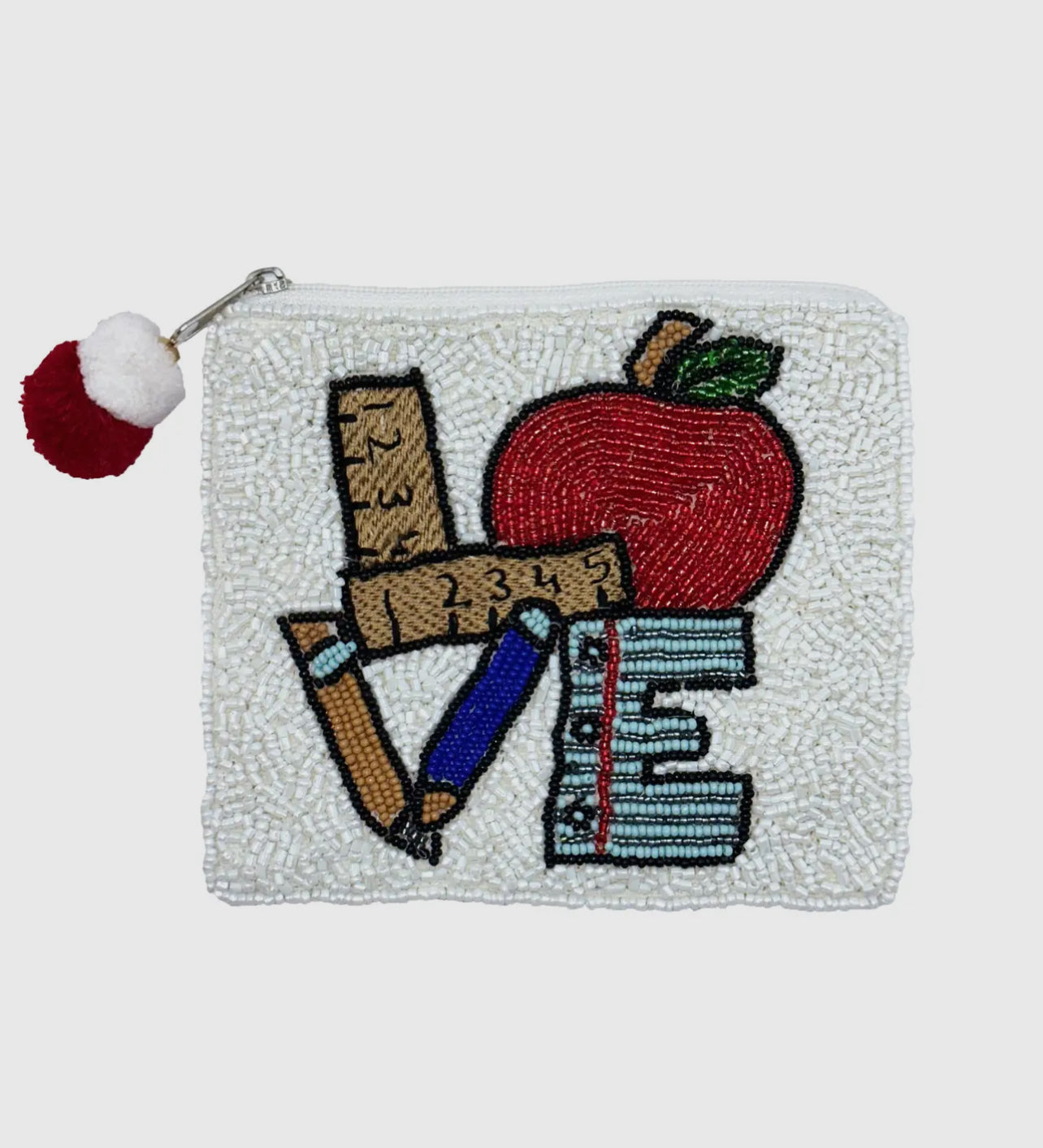 Picture a beaded coin purse that’s a heartfelt tribute to the teaching profession. Each bead is carefully arranged to spell out “LOVE” in a playful, colorful design, with accents that nod to classic teacher symbols like apples, books, and pencils. This purse isn’t just functional for keeping your coins and cards organized; it’s also a charming way to celebrate the passion and dedication of teachers. Whether you’re a teacher yourself or looking for a thoughtful gift, this coin purse adds a touch of appreciation and cheer to your daily routine.