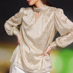 Imagine stepping into a stunning Lurex top that instantly elevates your style! This gold piece shimmers beautifully, catching the light with every movement. The shirred mock neck adds a touch of sophistication, creating a flattering silhouette that hugs just right. The soft, stretchy fabric ensures you’ll feel as good as you look, whether you’re dressing it up for a night out or pairing it with your favorite jeans for a more casual vibe. Perfect for adding a bit of sparkle to your wardrobe, this top is a versatile must-have that’s ready to make any occasion feel special!