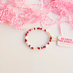 Introducing our Maroon and White Game Day Beaded Bracelet, a spirited accessory that captures the essence of team pride and camaraderie. Crafted with meticulous attention to detail, this bracelet features alternating maroon and white beads, symbolizing the iconic colors of your beloved team. This bracelet is made with a variety of czech glass beads and 14k gold filled beads! Each bracelet is handmade and different!