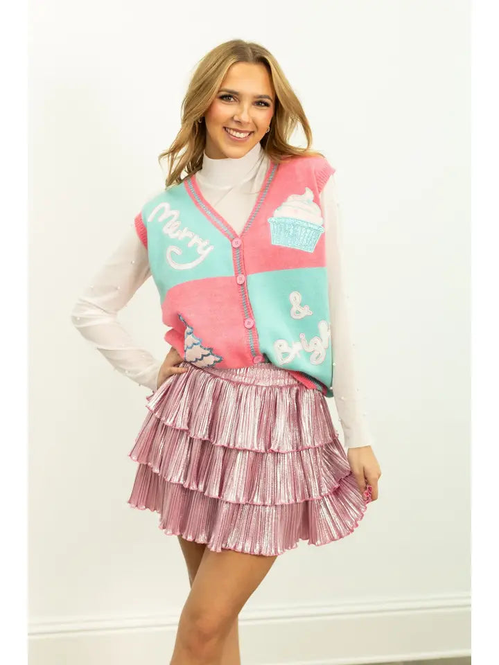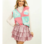 Some Stretch Crew Neck Button Closure Glitter Patch details