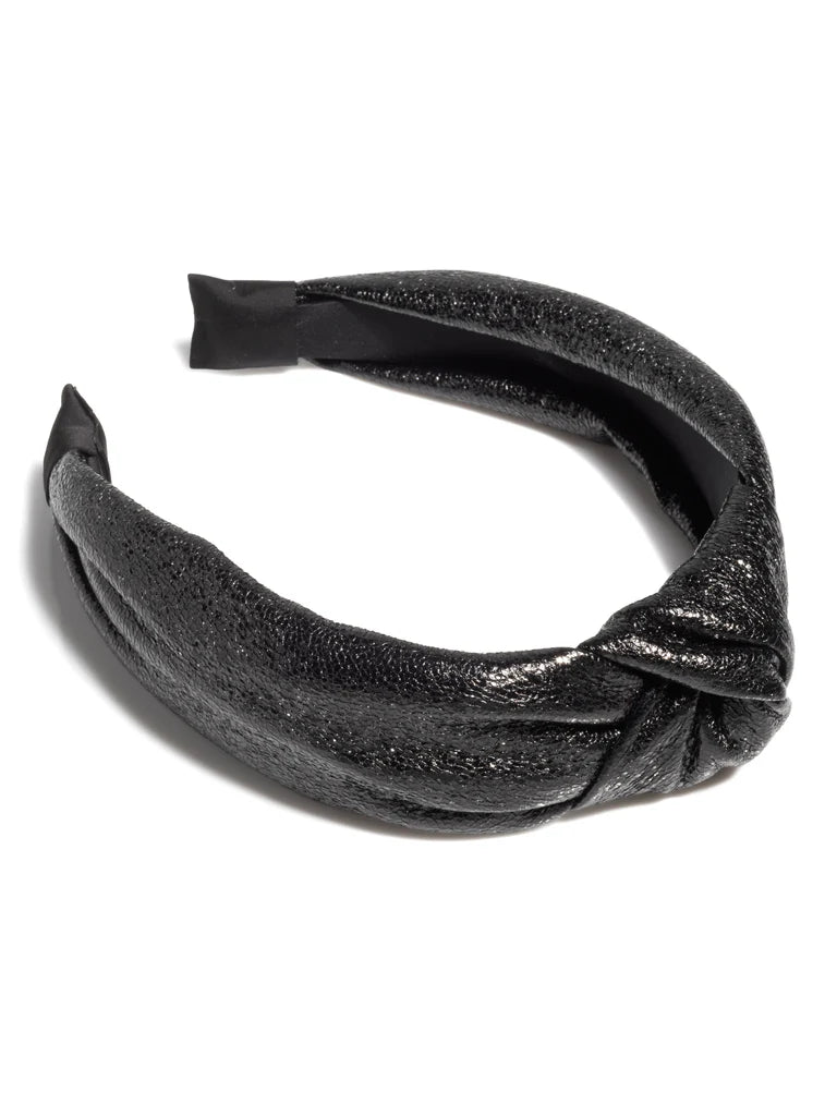 Add the perfect finishing touch to your outfit with this metallic knotted headband. Made from trendy, textured metallic PU in a dark black color, this classic hair accessory brings a touch of shine to your outfits. With its single color and elegant top knot detail, it is the best way to tie together any celebratory or everyday style.