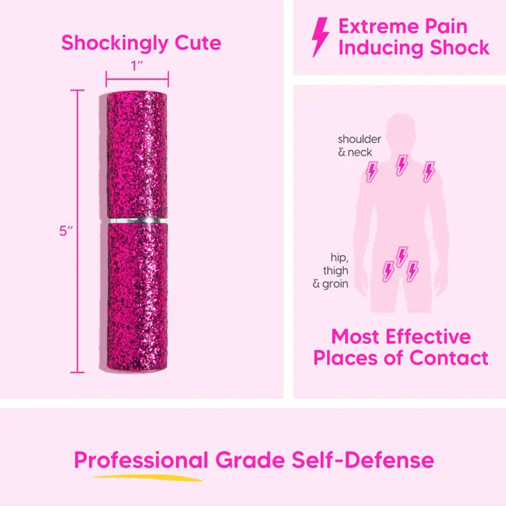 + Stun gun sparks and sounds for immediate intimidation + High voltage current produces painful electric shocks + Lithium-ion battery is rechargeable (charging cable included) + Slim, lightweight design is easy to carry in your pocket, purse, or backpack + Bright, 90 lumen LED flashlight + BLINGSTING is the #1 gifted women’s safety brand and has been trusted by over 3 million women since 2013!