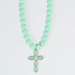 Designed with glossy mint gemstone beads and finished with a sparkling crystal cross pendant. This piece is a gentle reminder of grace, hope, and God's everlasting love.