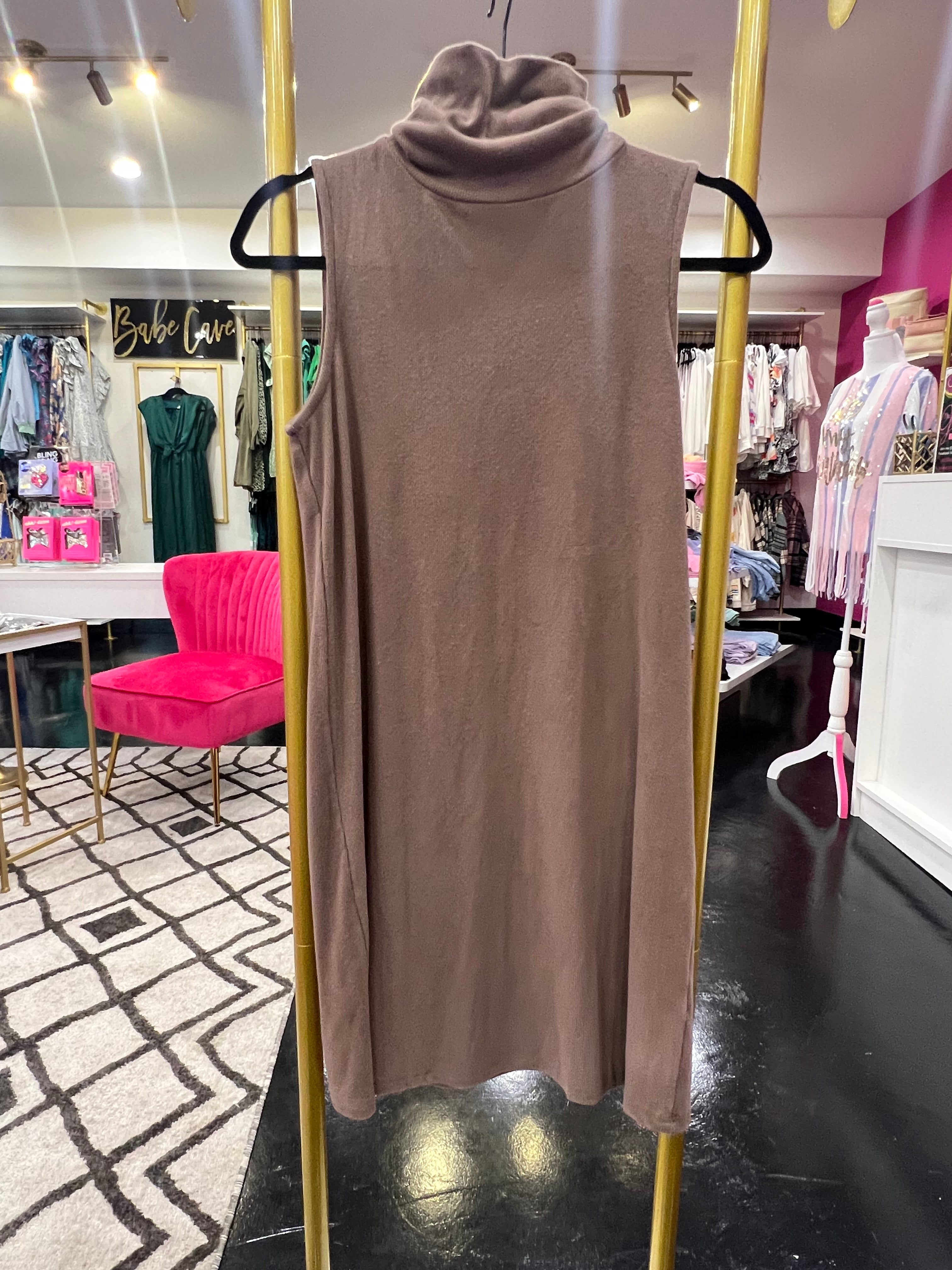 Mocha Sleeveless Turtle Neck Brushed Rib Knit Dress