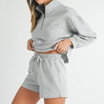 This set is all about laid-back comfort with a touch of sporty style. The long-sleeve mock neck pullover has a half zip-up design, so you can adjust the neckline to your liking, whether you want it cozy or a bit more relaxed. The matching elastic drawstring shorts are easy to wear, giving you the perfect balance of comfort and style. The elastic waistband ensures a snug fit, while the drawstring lets you adjust it to your preference. Whether you're lounging at home or running errands, this set is a comfy, cute choice that’s effortless yet stylish!