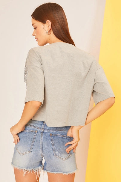This Nashville Crop top is the ideal crop for rodeo this season! After all Nash is known for its country music! This top is a flawless combination of casual and bling with 100% cotton crop top tee, sequin wording and sequin fringe on the shoulders!