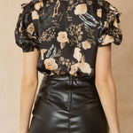 SATIN PRINT PUFF SLEEVE