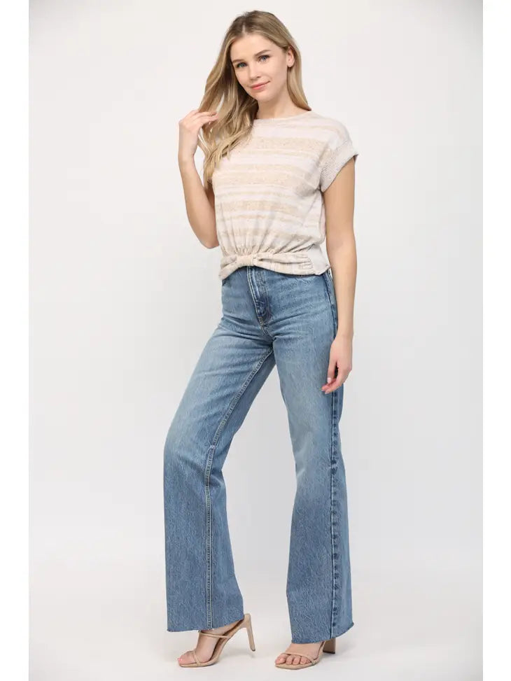 Linen blend rolled knot bottom sweater 85%poly 15%linen