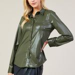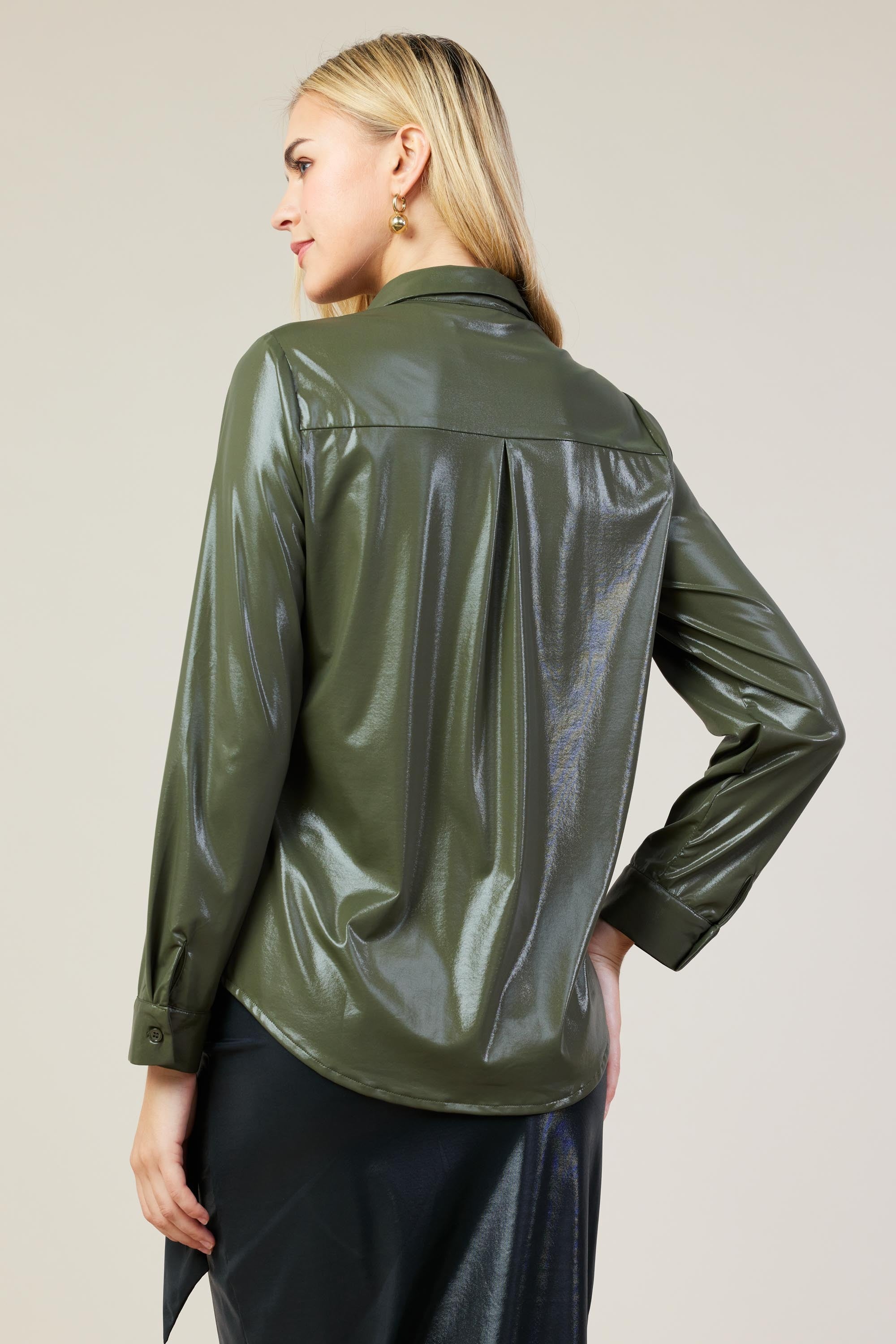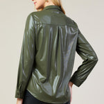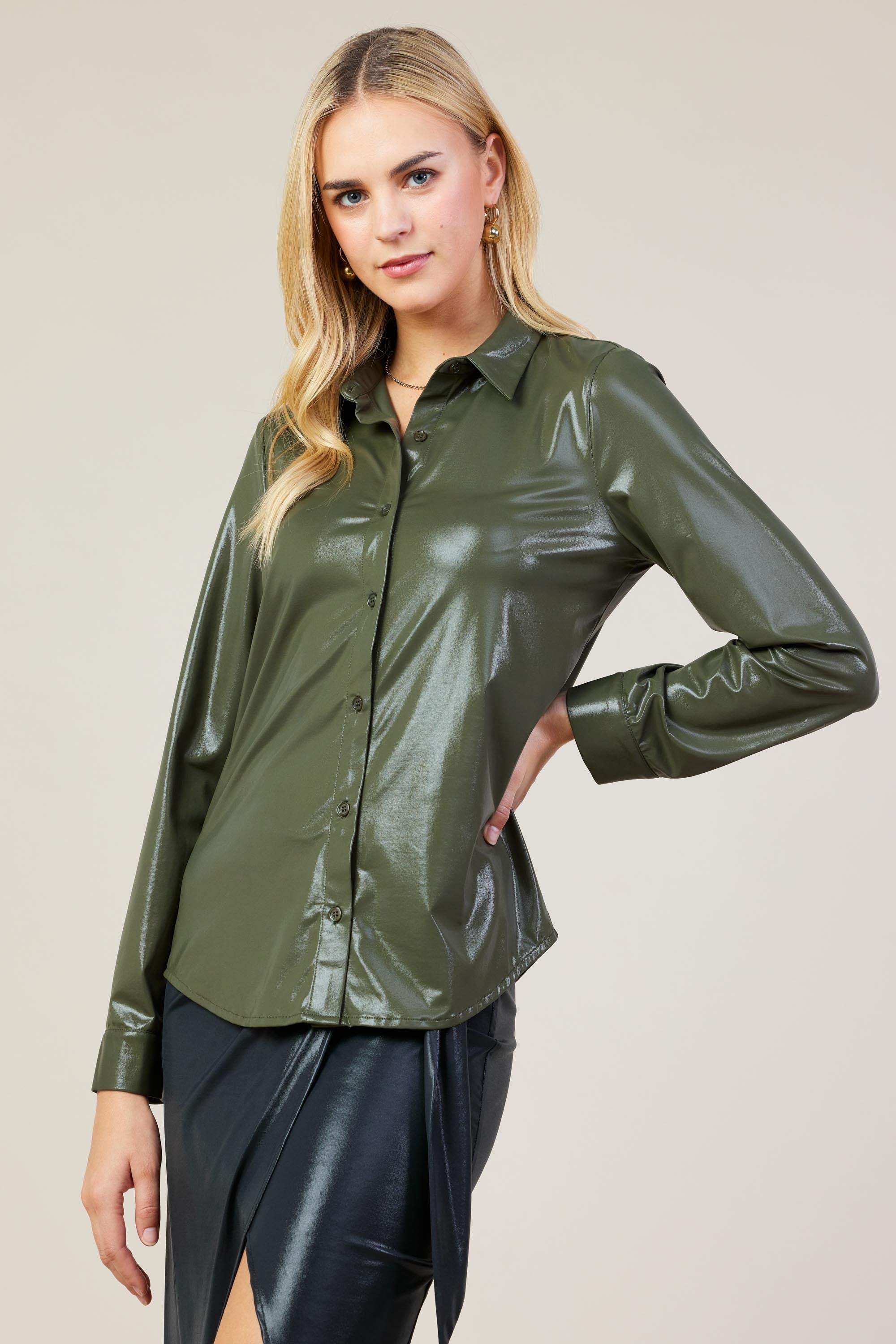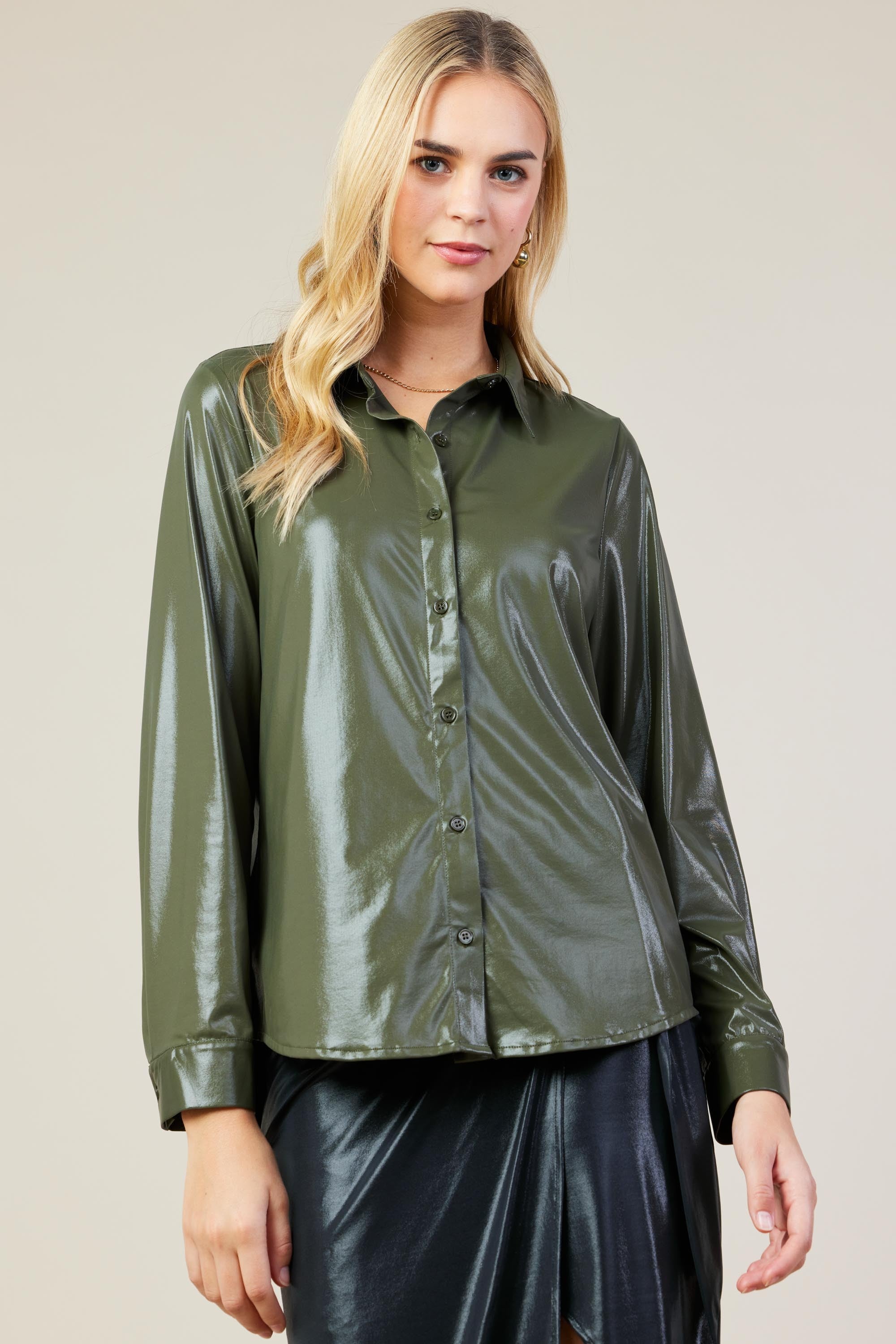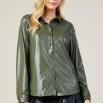 Elevate your look with our olive button down. The top offers a classy look , the olive color combined with the smooth texture of the polyester and the slight sheen from the fabric blend gives the shirt a polished and refined look. It can be styled casually with jeans or dressed up with trousers, depending on the occasion.
