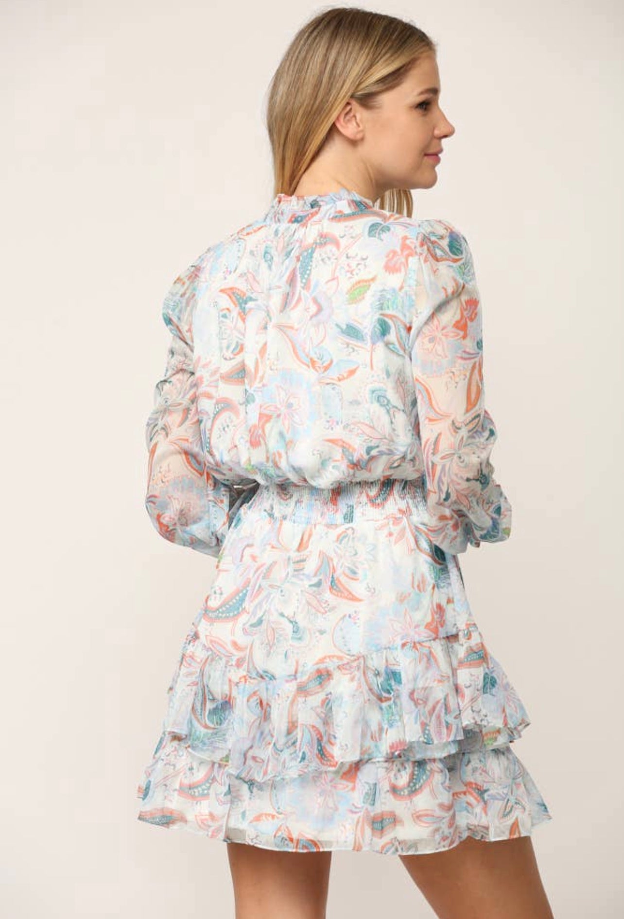 Paisley Print button front tiered ruffle dress. Just the perfect paisley colors for Spring.