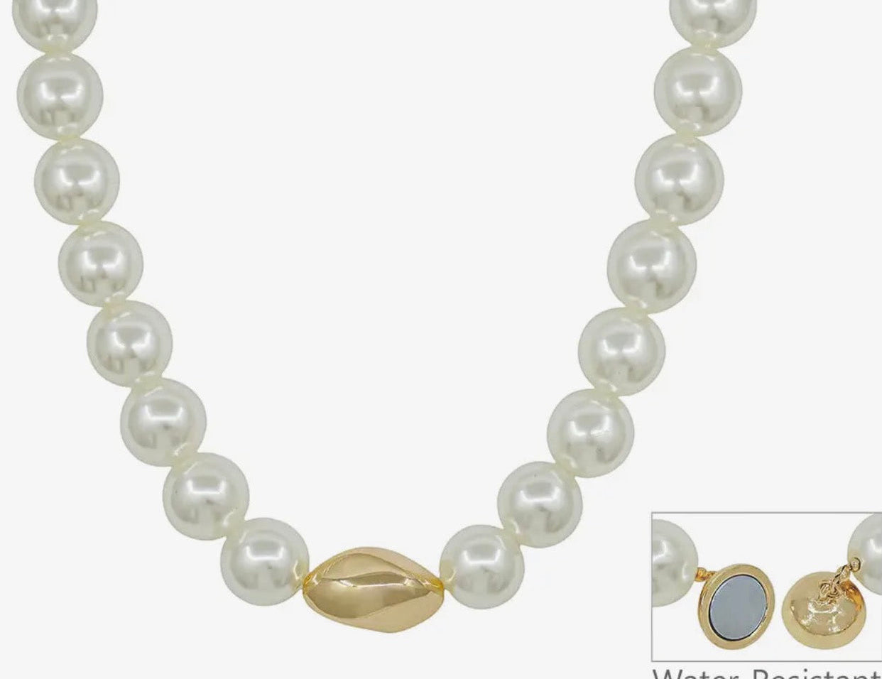 18MM Pearl Beaded with Gold Nugget 17" Necklace. This fashionable piece combines the timeless elegance of pearls with the bold allure of gold nuggets.