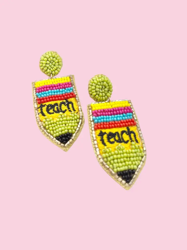 Gift your favorite teacher the cutest earrings! These teach earrings are great to add a pop of color to any outfit! The earrings are nickel-free, made of surgical steel and felt-back making them very lightweight and great for all-day wear.