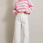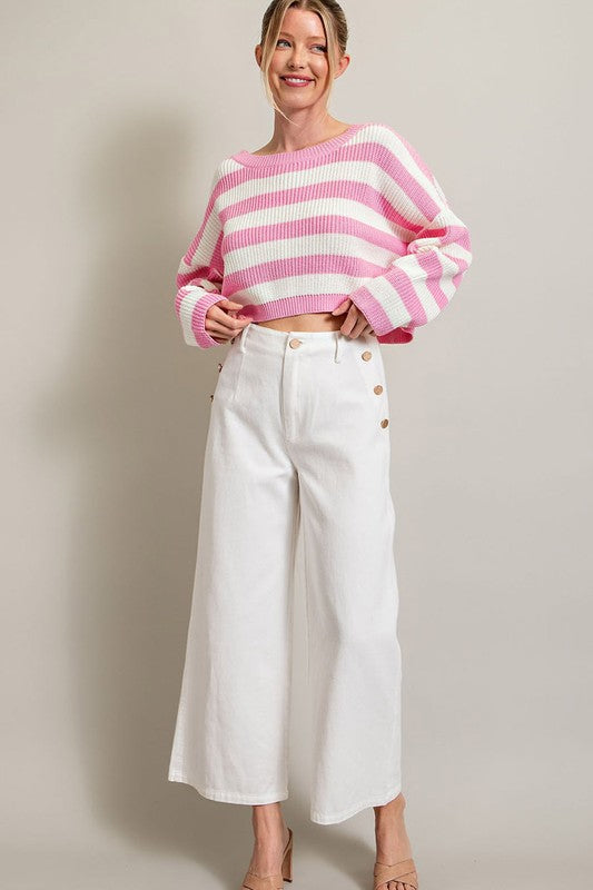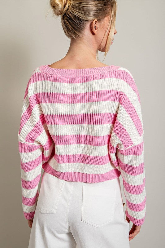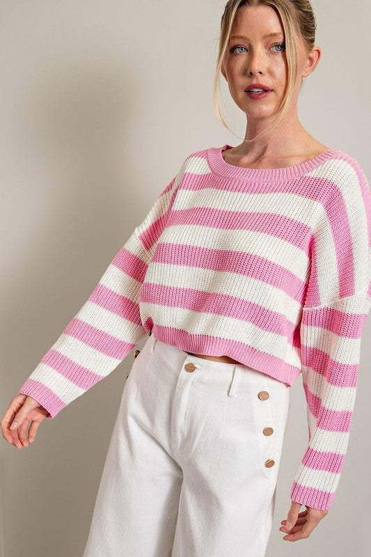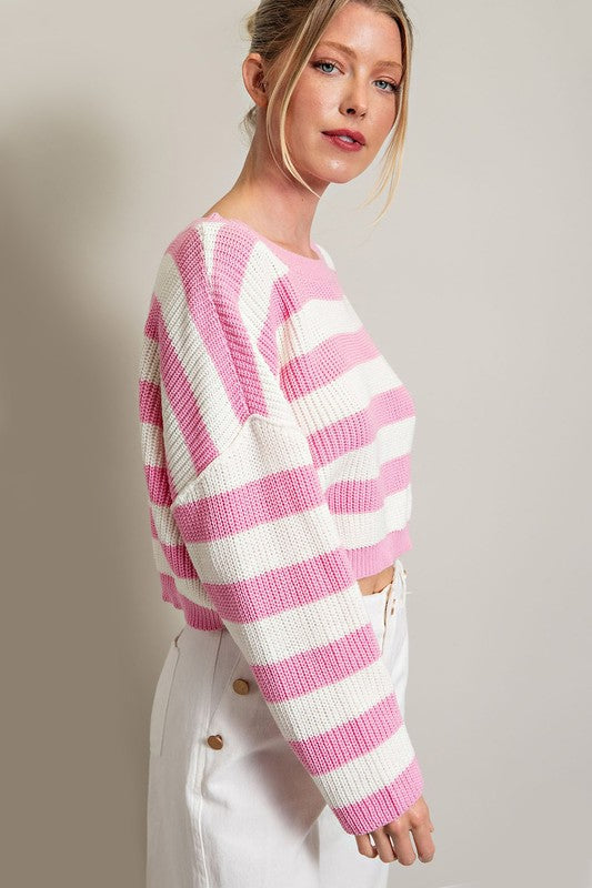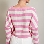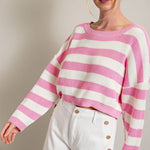 Striped long sleeve knit sweater top featuring a relaxed and loose fit,