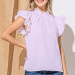 Indulge in timeless charm with this textured polka dot blouse, boasting a double-layered ruffle design! The playful polka dots add a touch of whimsy to the textured fabric, while the double-layered ruffles bring a sense of sophistication and movement.
