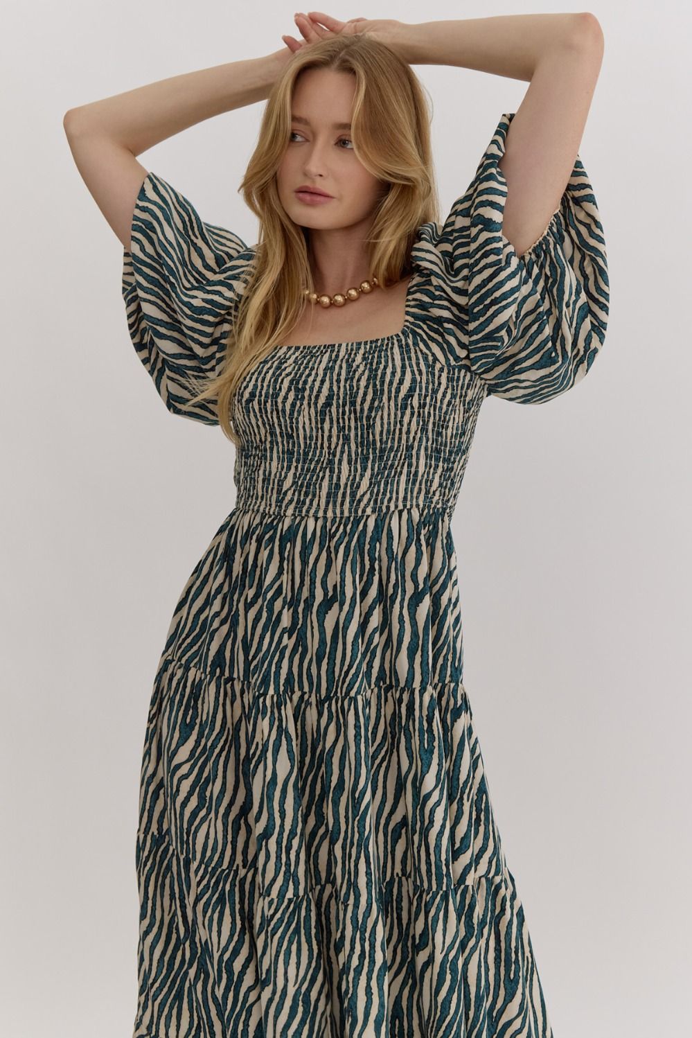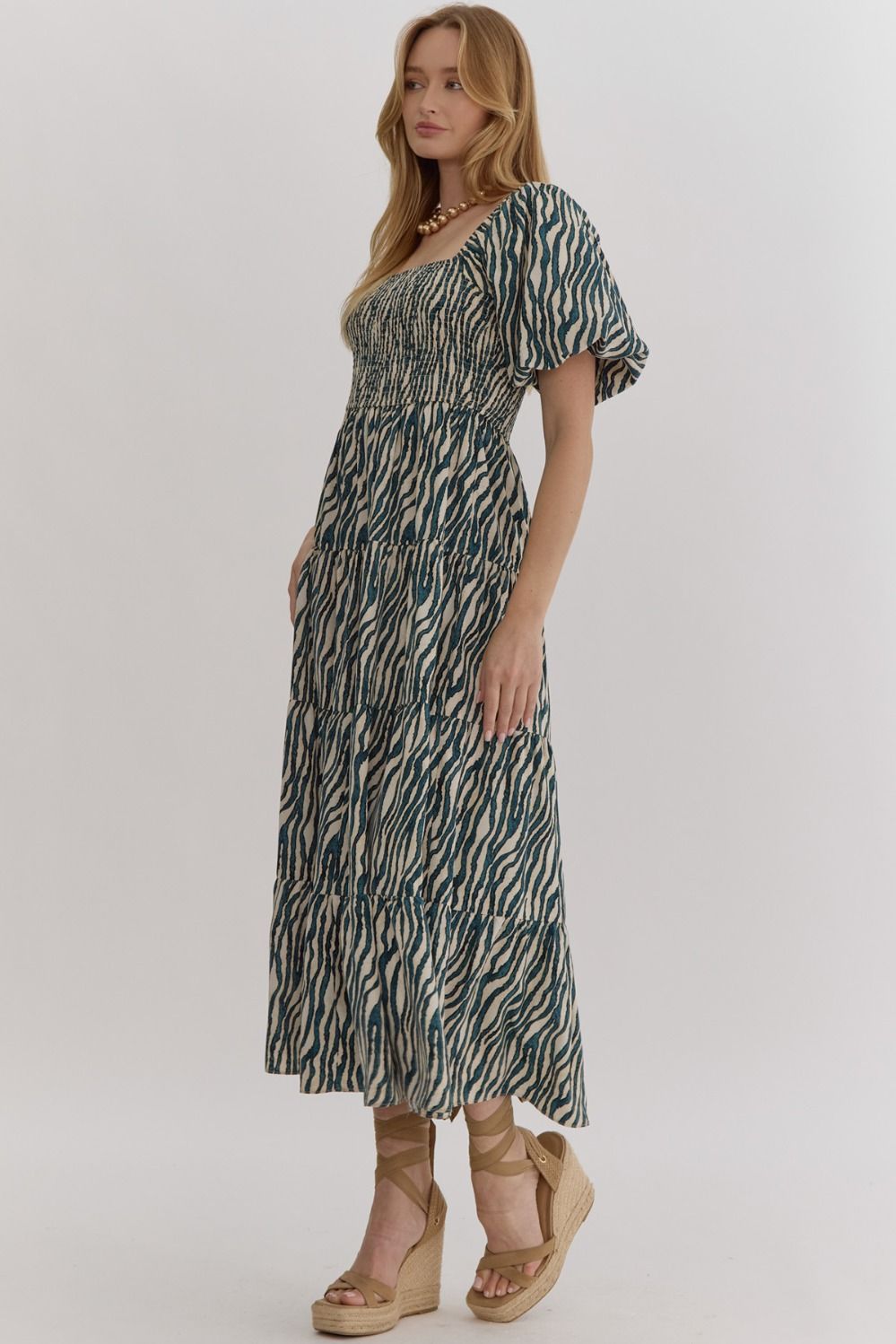 This printed tiered square neck midi dress is the definition of easy elegance. With a flattering smocked bust that hugs just right, it flows into a breezy, lightweight tiered skirt that moves beautifully with every step. The square neckline gives it a charming, vintage vibe, while the woven fabric keeps it comfortable and non-sheer, so you don’t have to worry about extra layers. Fully lined for added comfort, this dress is perfect for anything from brunch with friends to a relaxed summer wedding, making you feel effortlessly stylish and feminine all day long.