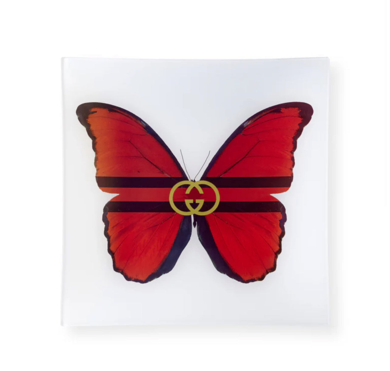 This ceramic trinket tray is a charming and delicate piece, featuring a beautiful red butterfly design at its center. Its simple yet elegant shape makes it perfect for holding small treasures like jewelry, coins, or keys, while the vibrant butterfly adds a touch of whimsy and nature-inspired beauty. Whether perched on your vanity, bedside table, or entryway, this tray is both functional and decorative—ideal for keeping little essentials organized while adding a pop of color and a hint of elegance to any space. 4.5x4.5 inches.