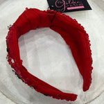 This red knot headband is a dazzling and spirited accessory that combines glamour with a playful touch of sportsmanship. Its bold red color exudes energy and confidence, making it a statement piece for any occasion.