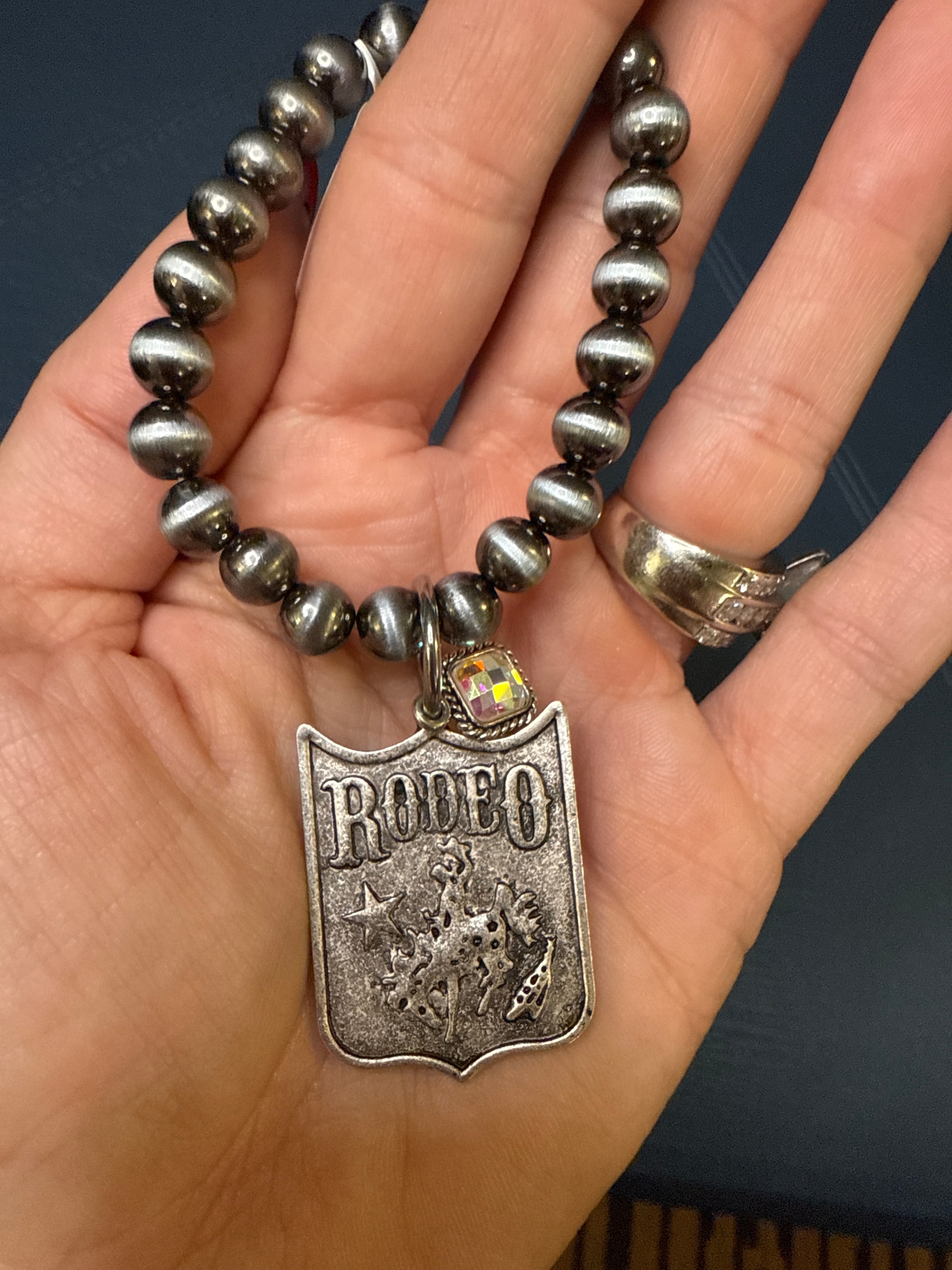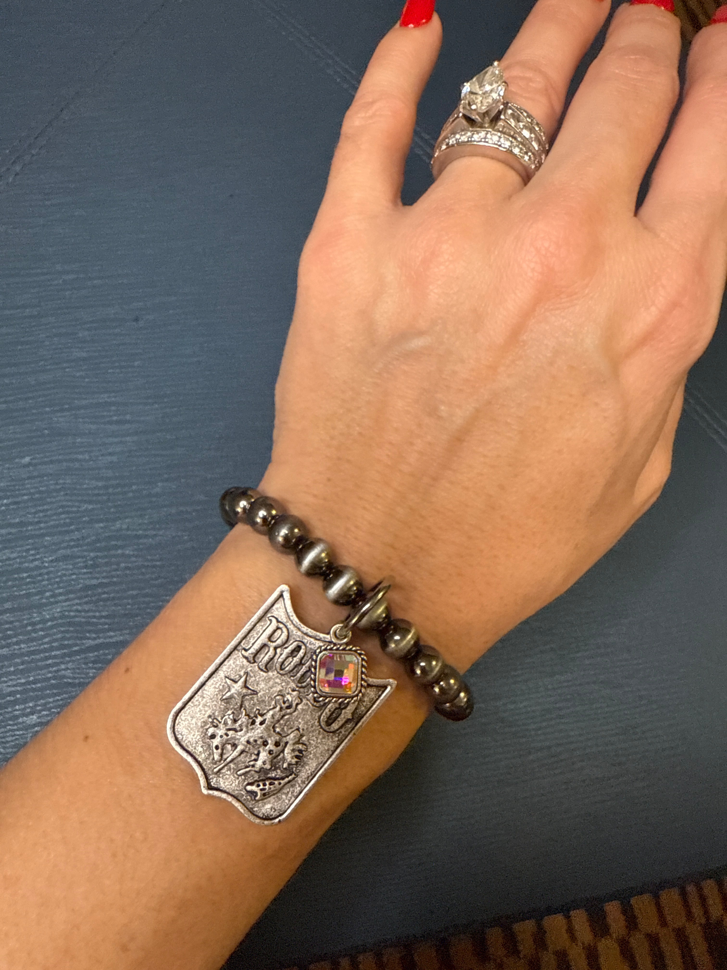 Talk about a statement! Bracelet with Rodeo pendant & crystal.