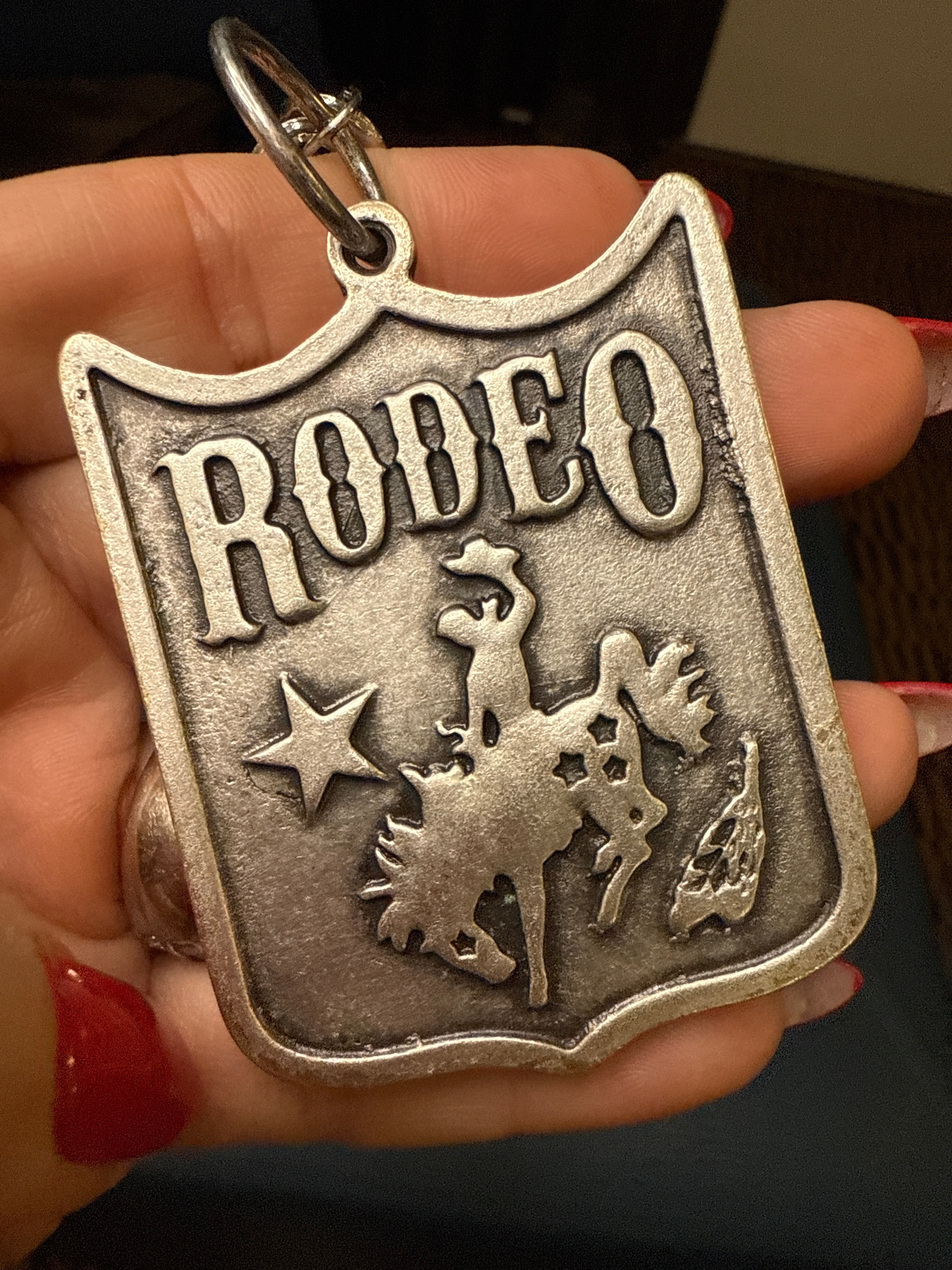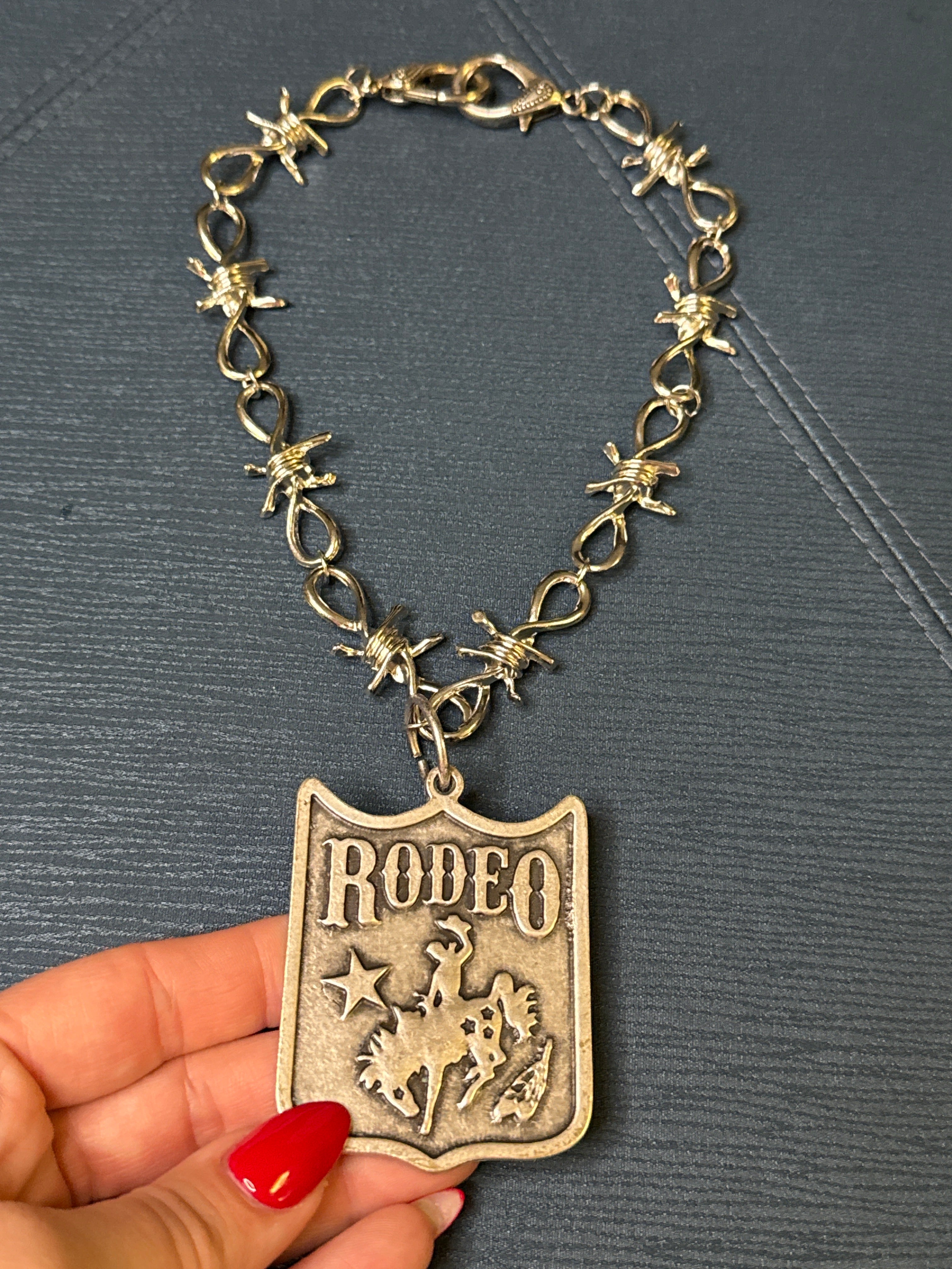 Talk about a statement! Barbed wire necklace with Rodeo pendant.