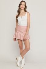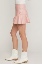 Solid faux leather tiered mini skirt featuring zipper closure on the side. Lined. Woven. Non-sheer. Lightweight.