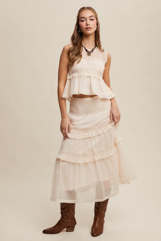 This High-Low Peplum Top and Tiered Skirt Set is the definition of effortless elegance! The peplum top has a flattering high-low hem that creates a feminine, flowy silhouette. The keyhole and tie string at the back give it a charming and adjustable finish, adding a sweet detail. The skirt features a stretchy smocked waistband for a comfy, secure fit, while the tiered design with ruffle accents adds a beautiful, textured flow with every step. Fully lined for extra comfort and coverage, this lightweight two-piece set is perfect for everything from brunch to a night out, keeping you stylish and comfortable all day long!