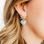 LINNY CO jewelry is safe for sensitive ears, light weight and made to last. Made from 100% surgical-grade stainless steel, LINNY CO is always copper and nickel free. The Ruthie earring is a gold-plated stainless steel bow pendant earring with an acrylic bubble heart. She is 23mm long in size and is a light-weight staple for every stylish gal. Blue is a very light blue with an iridescent sheen. Materials: Gold-Plated, Stainless Steel post.