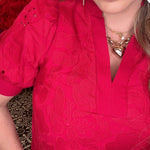 Turn heads in bold, beautiful color with our Scarlett Glow Top! Featuring a rich red hue with delicate embroidered floral details, this top is the perfect mix of feminine charm and everyday chic. The puff sleeves and flattering v-neckline add just the right touch of drama, while the lightweight fabric keeps it comfy and versatile.