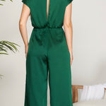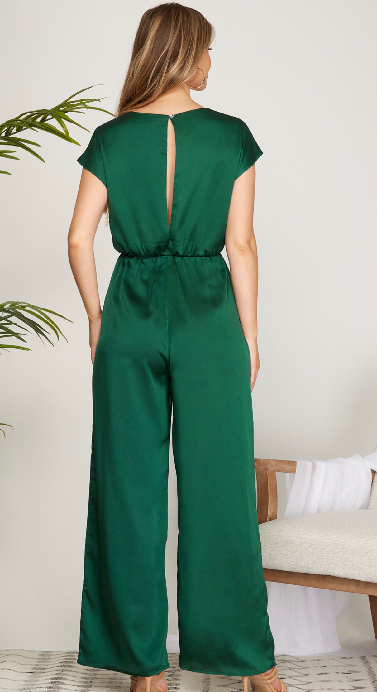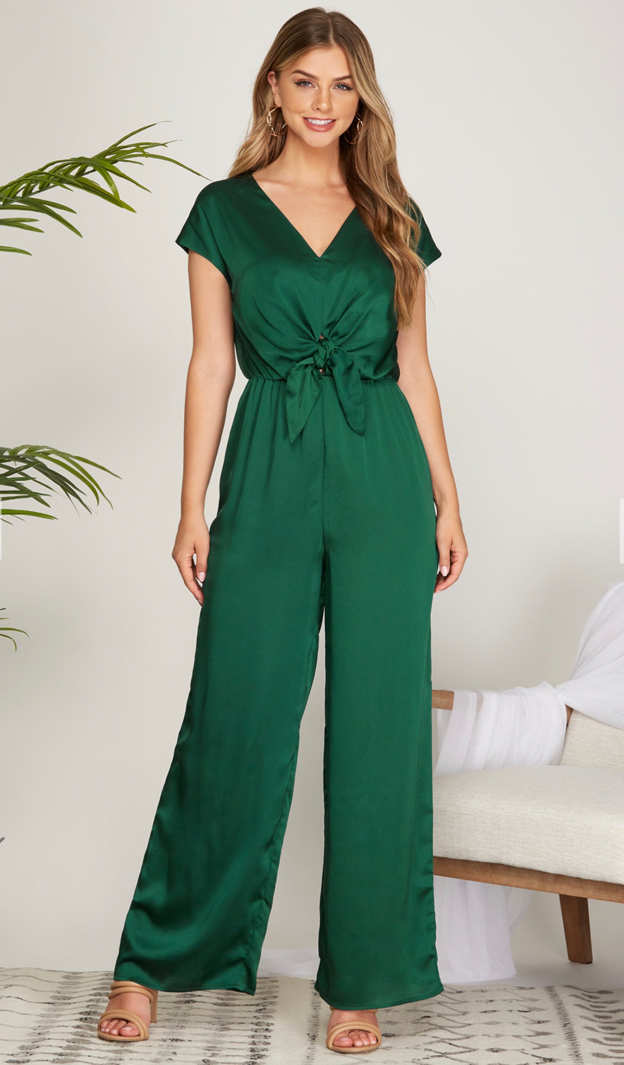 Sea Green Short Sleeve Sati Jumpsuit With Front Tie Detail