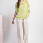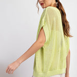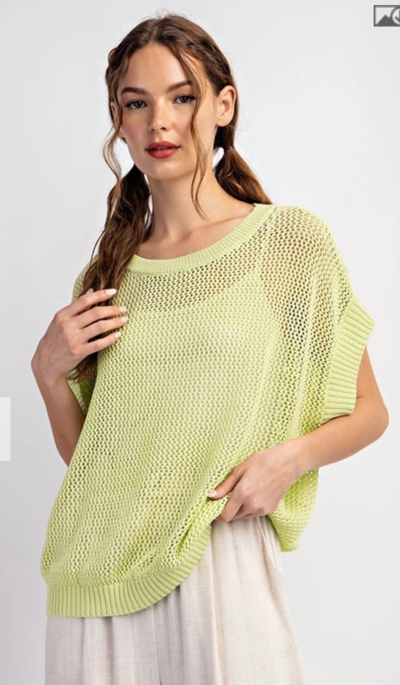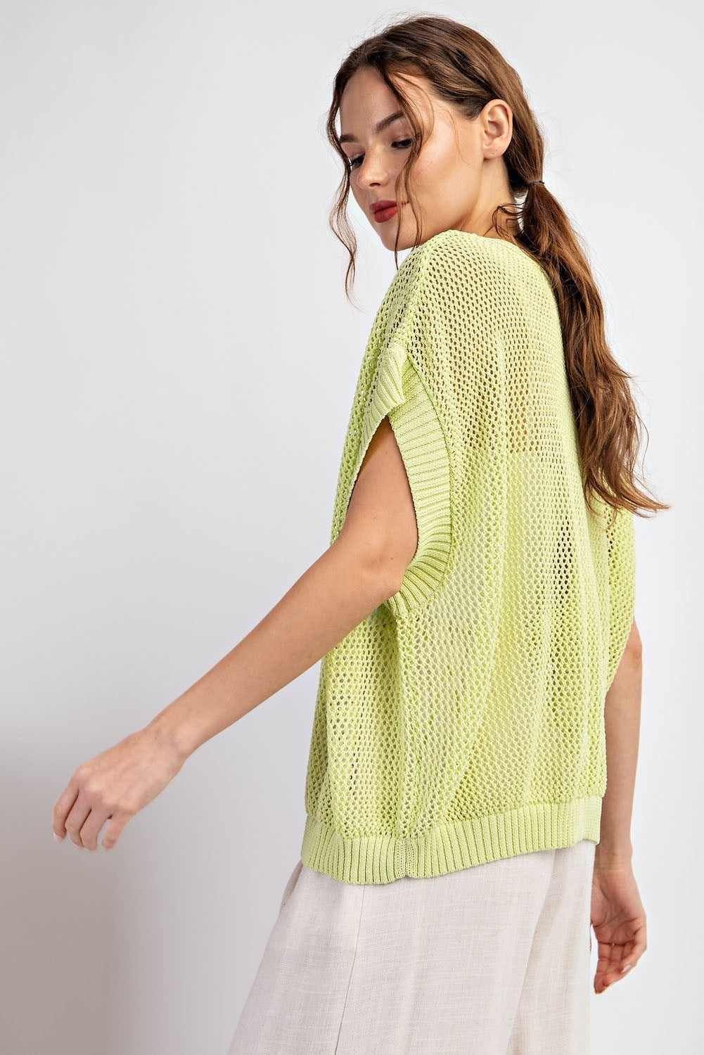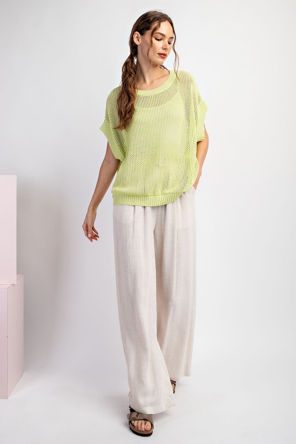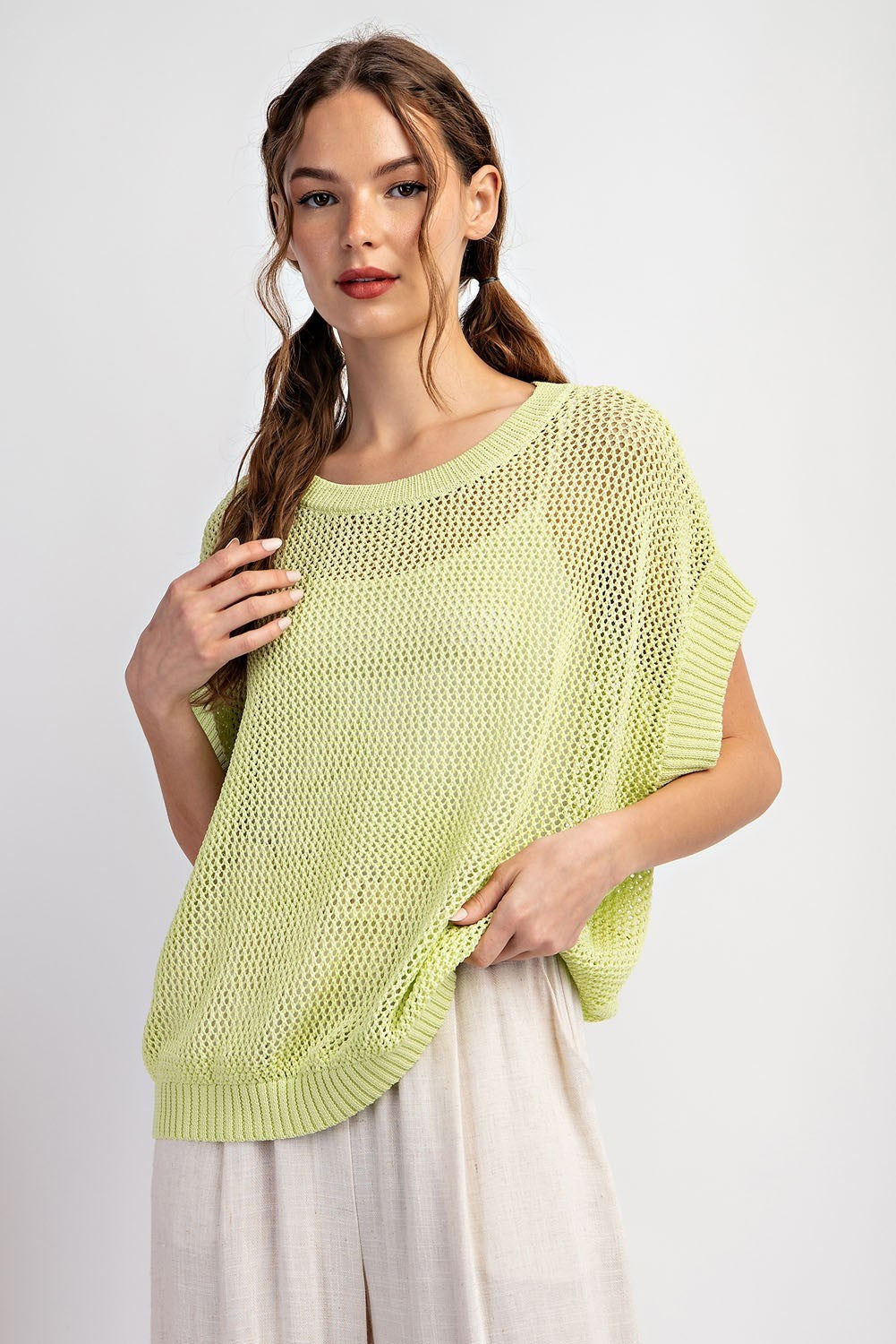 This short sleeve knit sweater top is perfect for the warmer weather headed our way! This piece features a rounded neckline, ribbed cuffs, a ribbed bottom band and a lightweight fabric is used to ensure a comfortable fit.