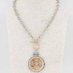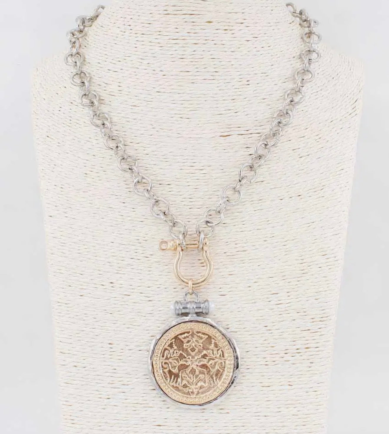 This Silver Chain with Open Circle and Large Silver Charm 16"-18" Necklace is a standout piece. The pendant charm necklace showcases the brand's commitment to fashionable yet affordable accessories.