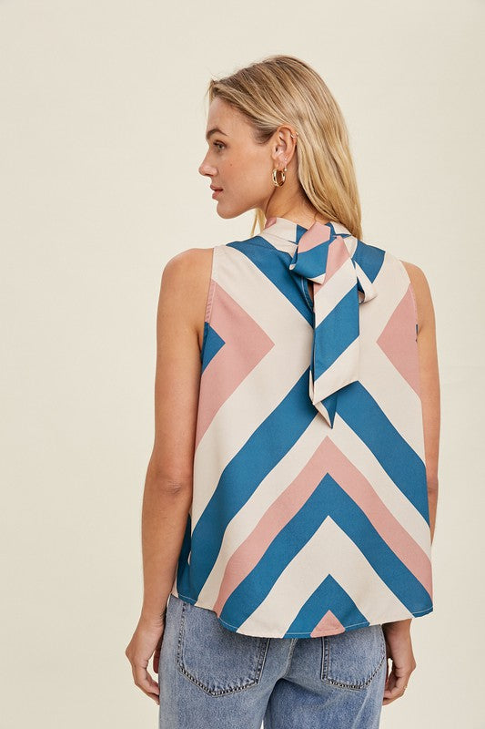 MULTI-COLOR CHEVRON BLOUSE WITH SELF TIE BACK 100% POLYESTER * Due to lighting and differences in monitors,