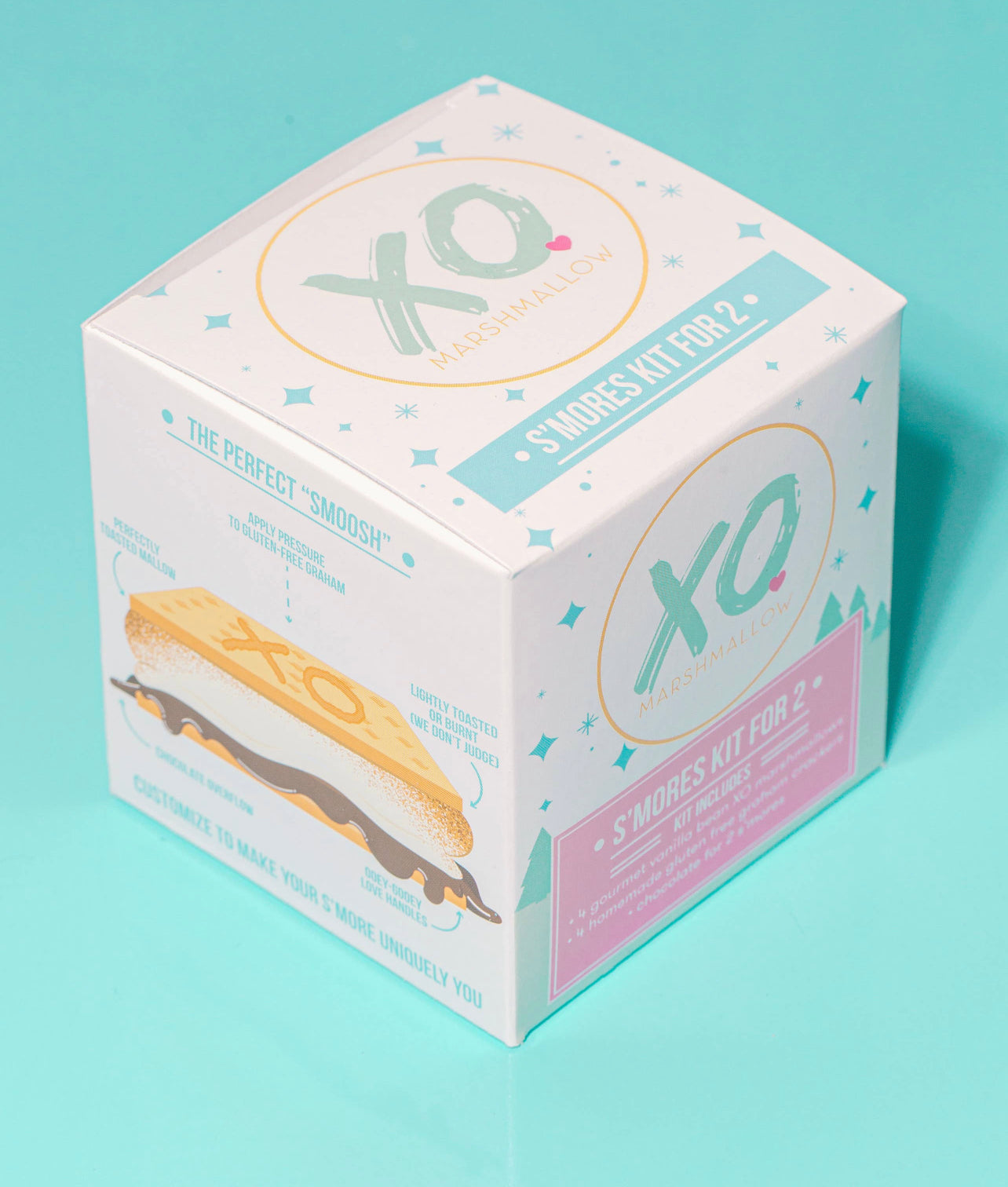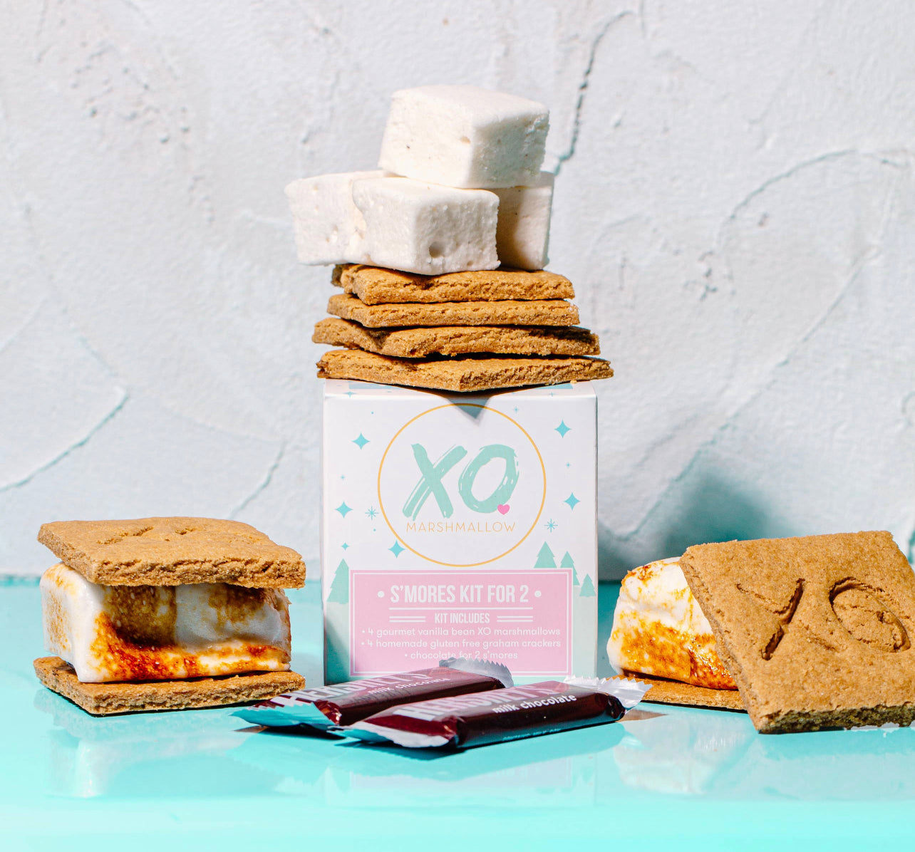 Our gourmet s’mores kits for 2 include everything you need to make 2 ooey gooey s’mores. Simply roast the marshmallows over an open flame and sandwich between two gluten-free grahams with a few squares of chocolate. This kit is packaged for shipping and gifting in an adorable tin, making it the perfect treat to enjoy at home or send someone you care about a little s’more love. Your S'mores Kit for 2 comes with: - 4 gourmet vanilla bean XO marshmallows - 1 bar of Hershey’s chocolate - 4 homemade xo gluten free grahams