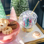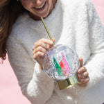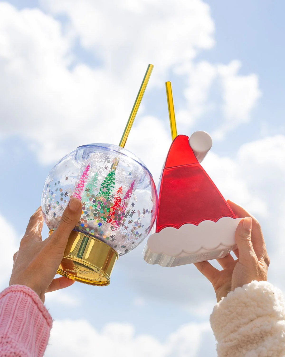 Shake up the season courtesy of this patented snow globe shaped holiday tumbler we designed complete with shakeable snow now inside! The perfect holiday party accessory or gift is this fun 14 oz novelty sipper we designed for the ultimate fun-haver this holiday season! Sip and sparkle, Santa's watchin' Party Girl.