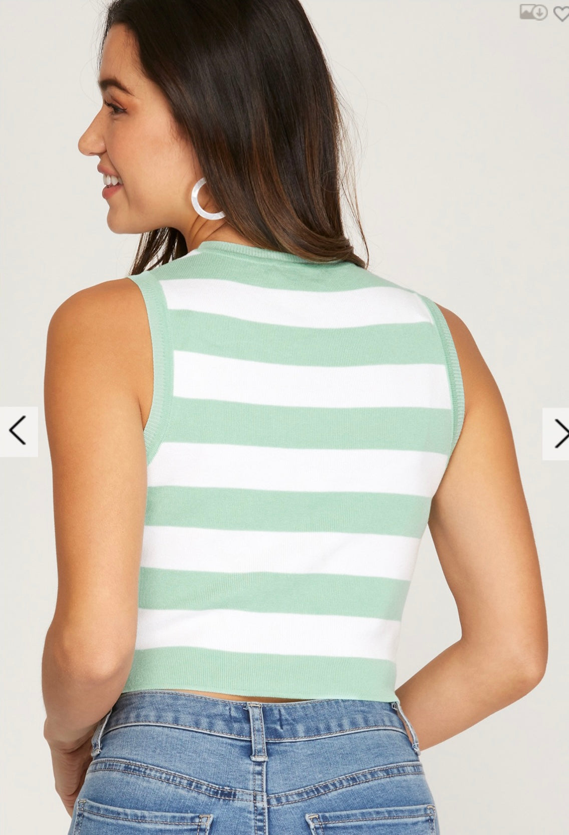 SLEEVELESS STRIPED KNIT SWEATER TOP