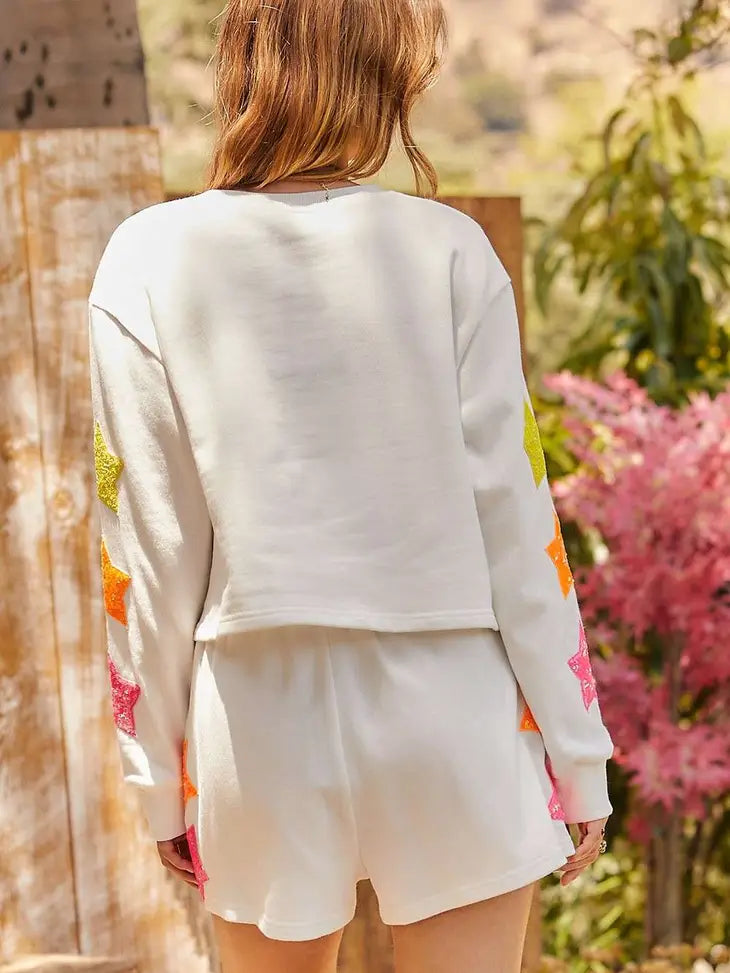 Waist Elastic Band Side Pockets Star Patch French Terry Shorts W/ LT33450 80% POLY 15% COTTON 5% SPAN HEATHER GRAY,OFF WHITE