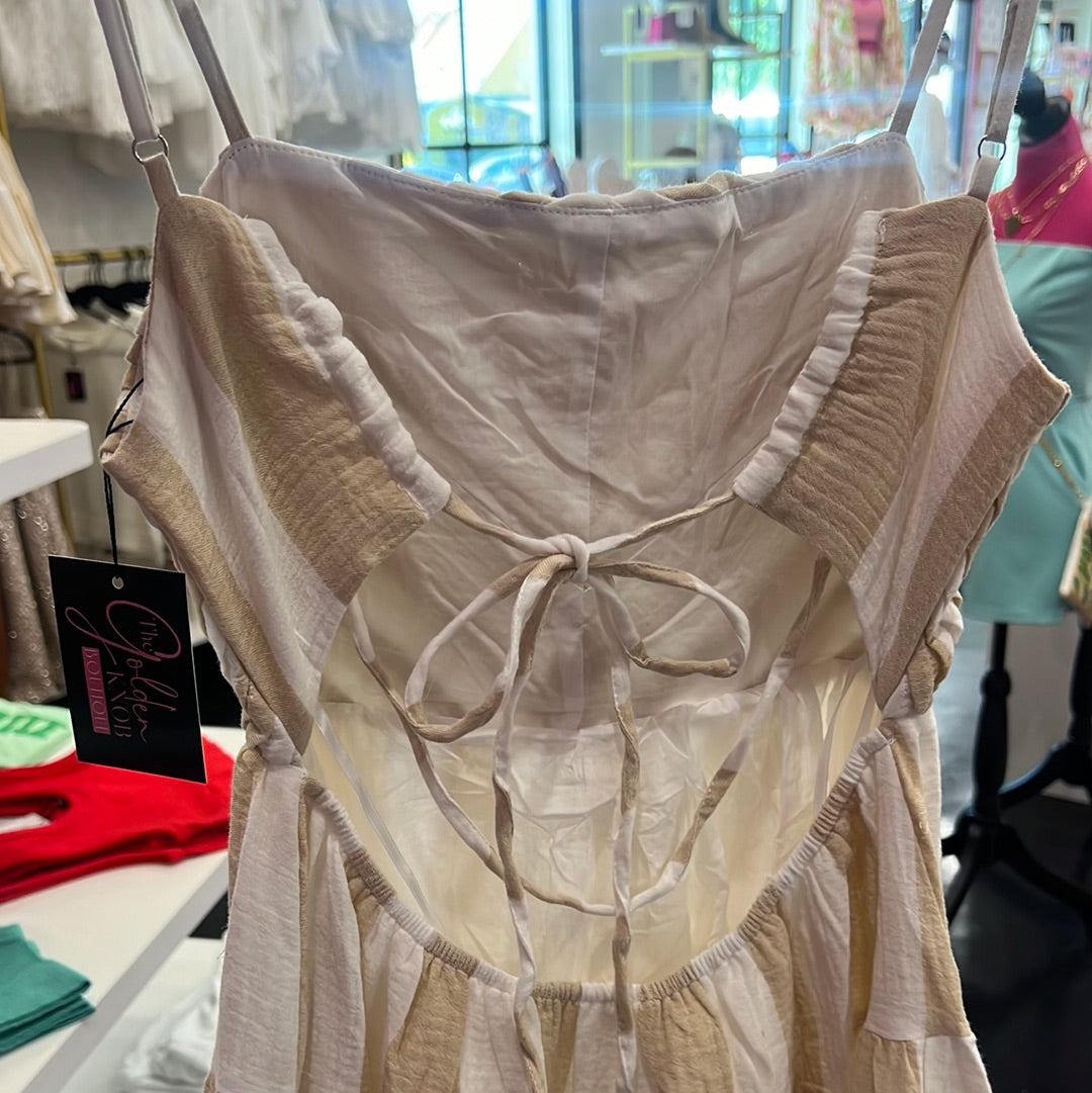 Stroll into summer with our striped open back summer dress. This dress is made from light weight material to ensure you never get hot in the blazing summer heat! The textured top adds a bit of flare, while the flowy bottom adds a touch of charm. Stay cool, cute, and stylish with this piece!