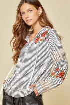 Striped Floral Zipper Hoodie